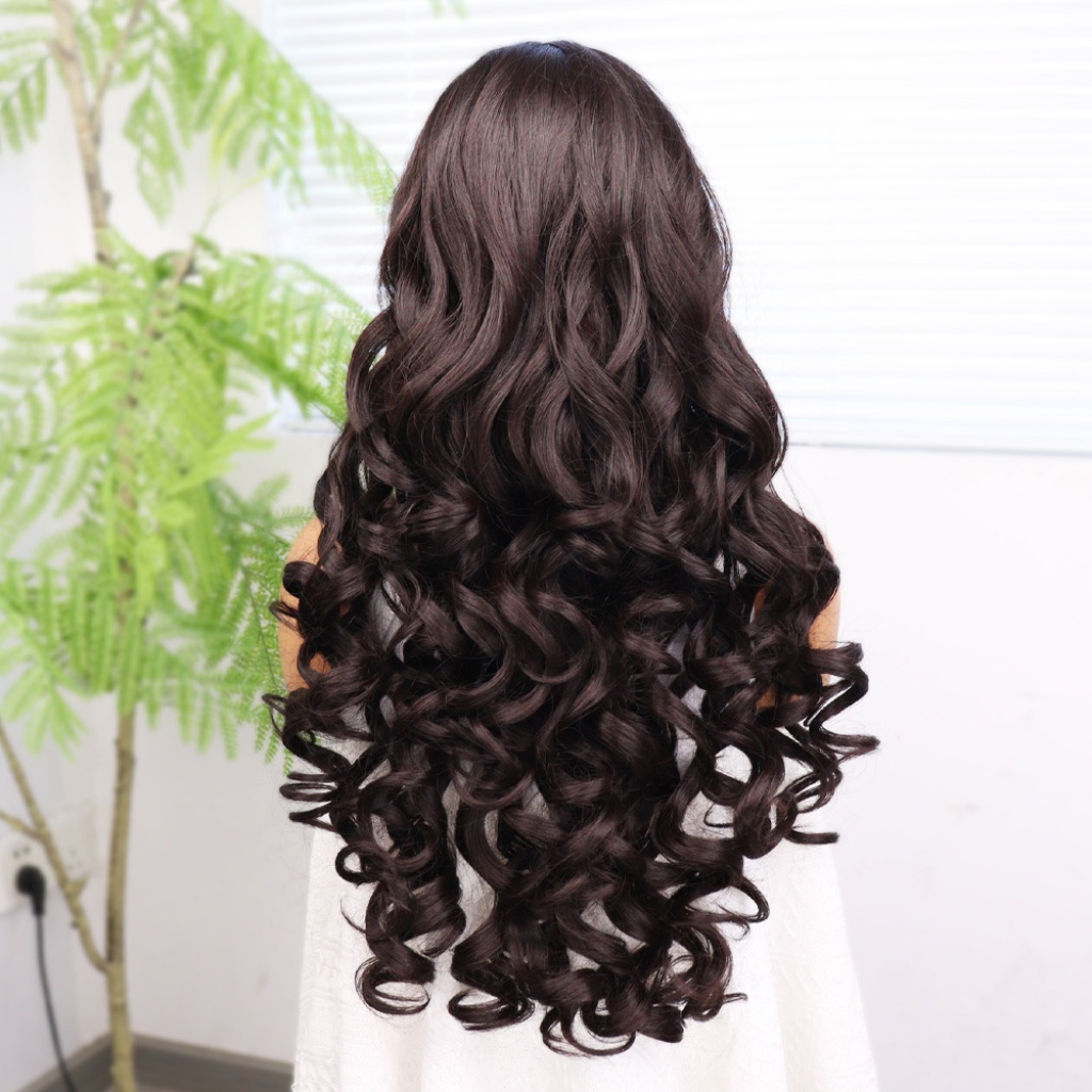 Açık Kahve Bebek Saçlı Fiber Sentetik Yoğun Dalgalı Tül Peruk
