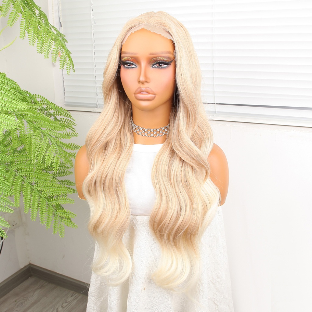 Açık Rus Kumralı Beyaz Platin Ombre Fiber Sentetik Tül Peruk