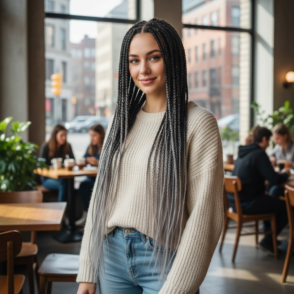 Afrika Örgüsü Ve Rasta İçin Sentetik Ombreli Saç - Siyah / Orta Ton Gri
