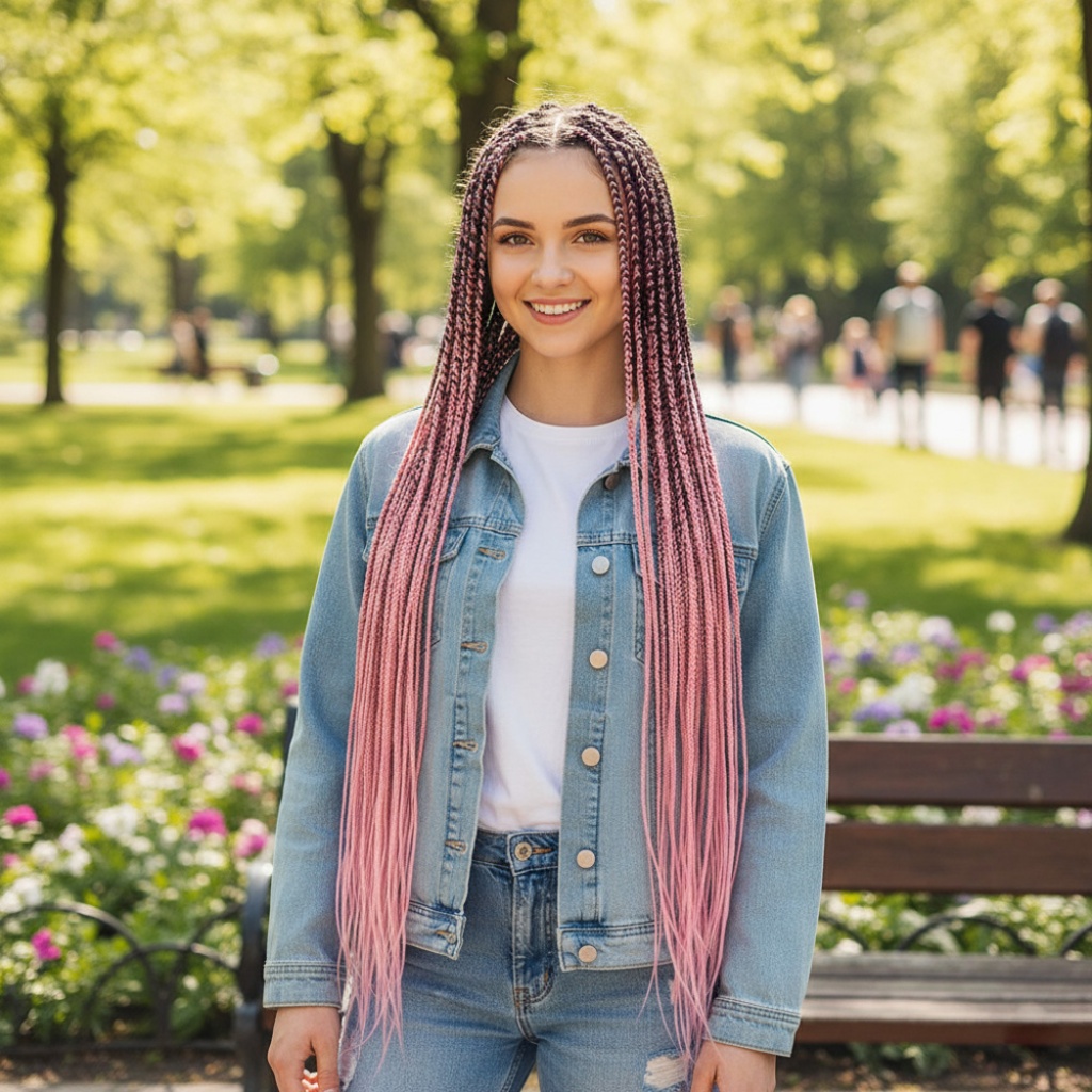 Afrika Örgüsü Ve Rasta İçin Sentetik Ombreli Saç - Siyah / Pudra Pembe