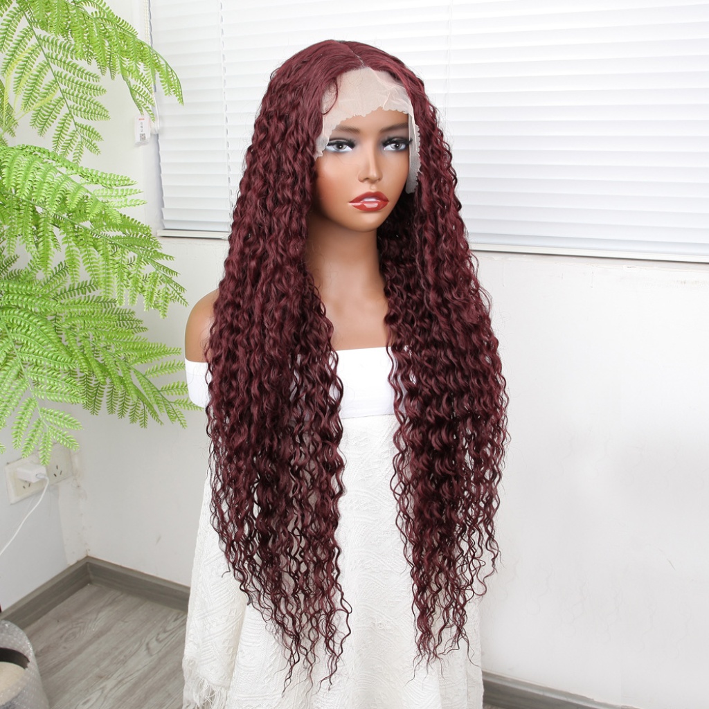 Afro Dalga Kızıl Kahve Fiber Sentetik Tül Peruk
