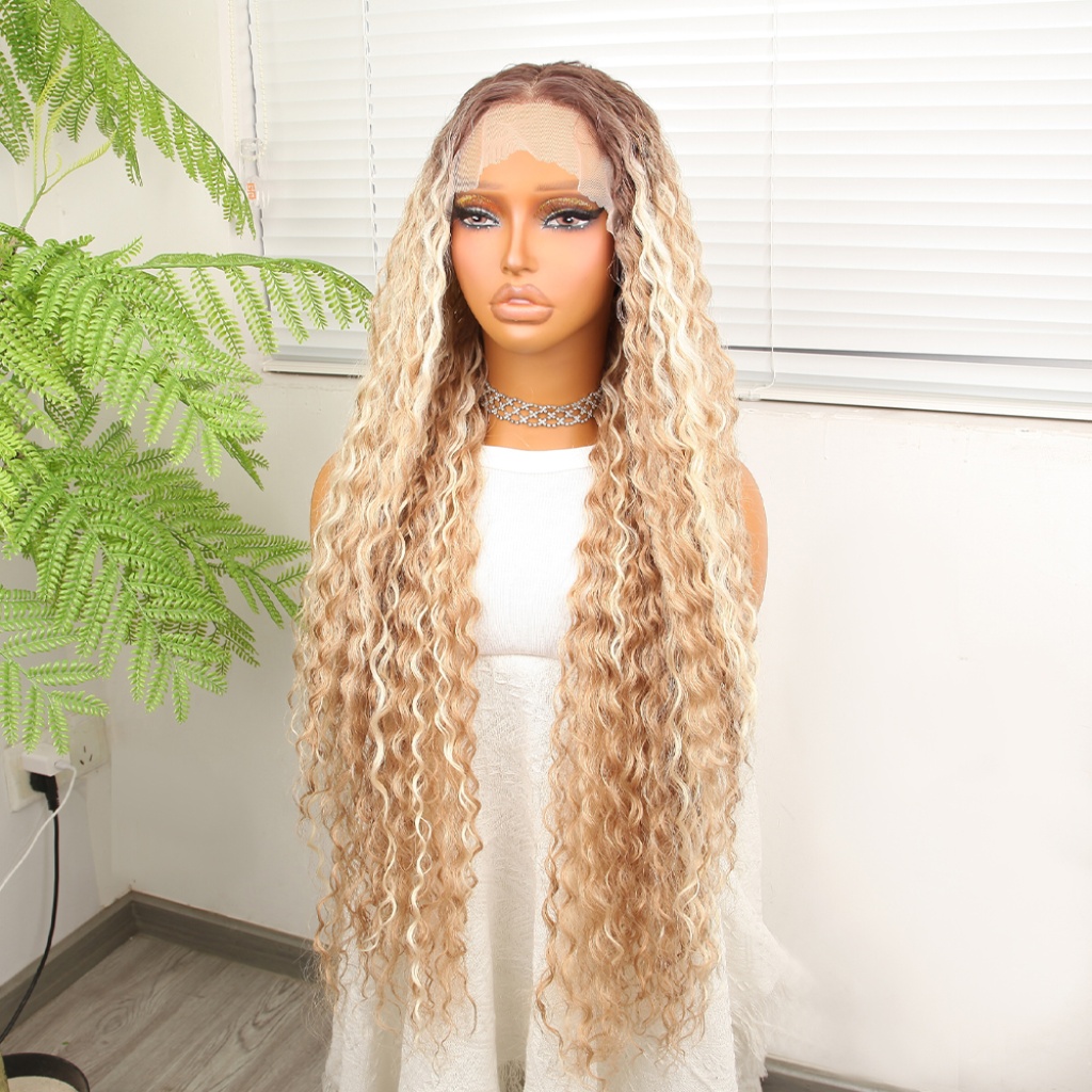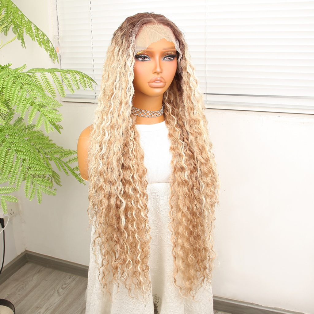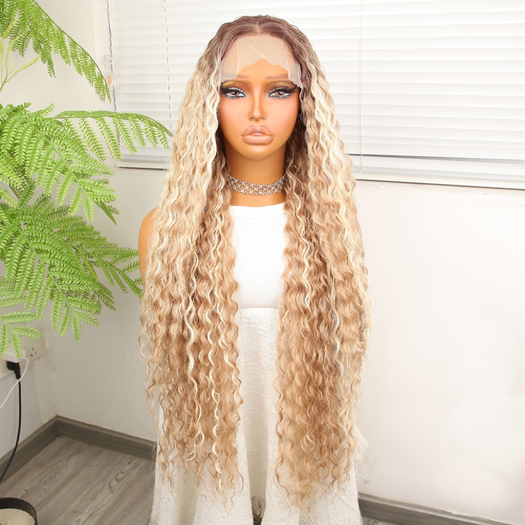 Afro Dalga Rus Kumralı Balköpüğü Ombreli Platin Işıltılı Fiber Sentetik Tül Peruk