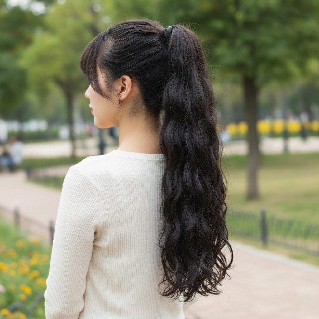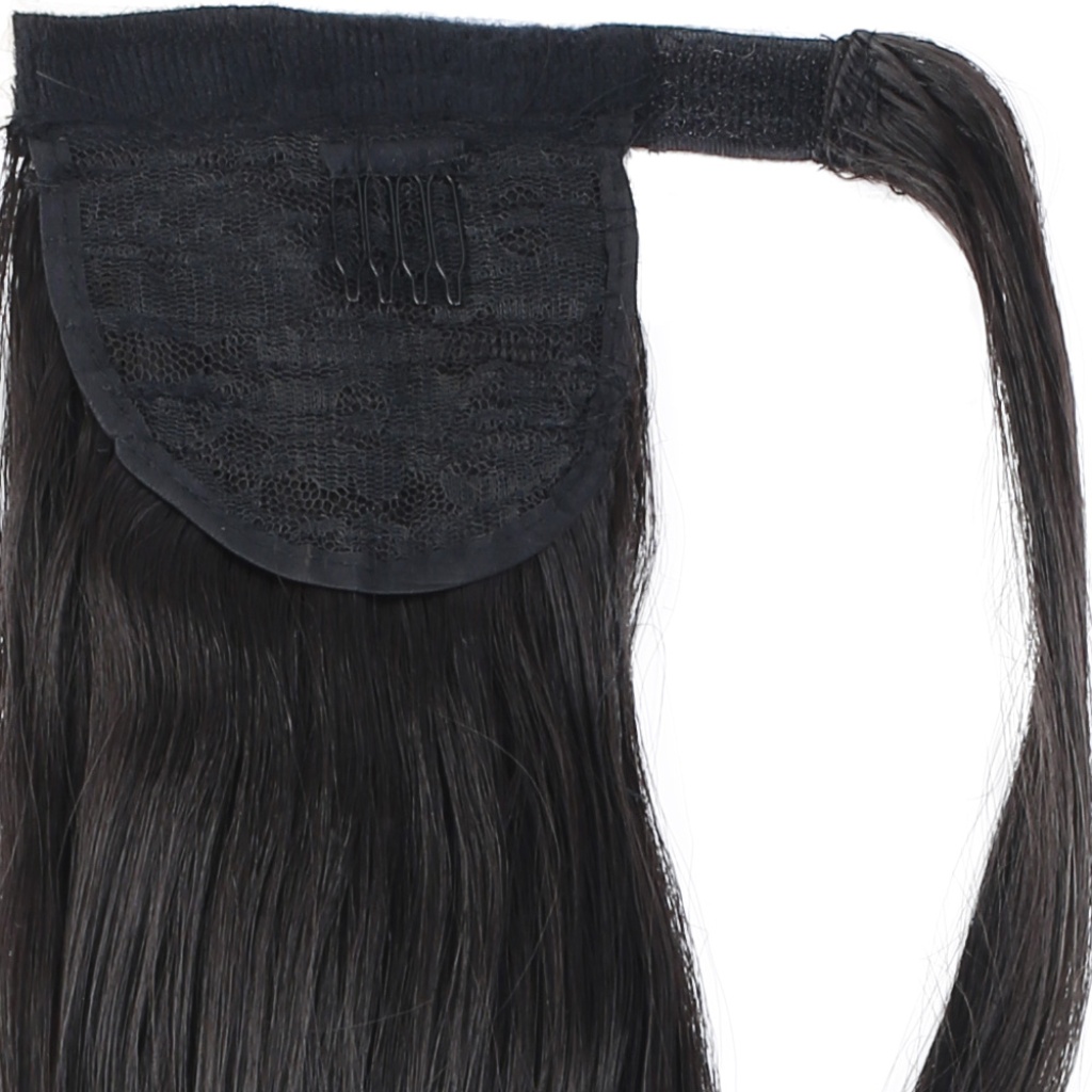 - Saçınızı topladıktan sonra, at kuyruğunun cırt cırtlı bağlama kısmını saçın etrafından çevirin ve saçınızı kapatın.