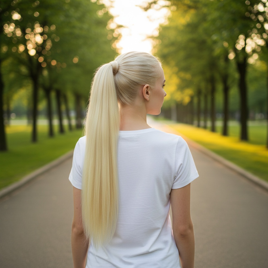 Bağlamalı Düz At Kuyruğu - Açık Platin