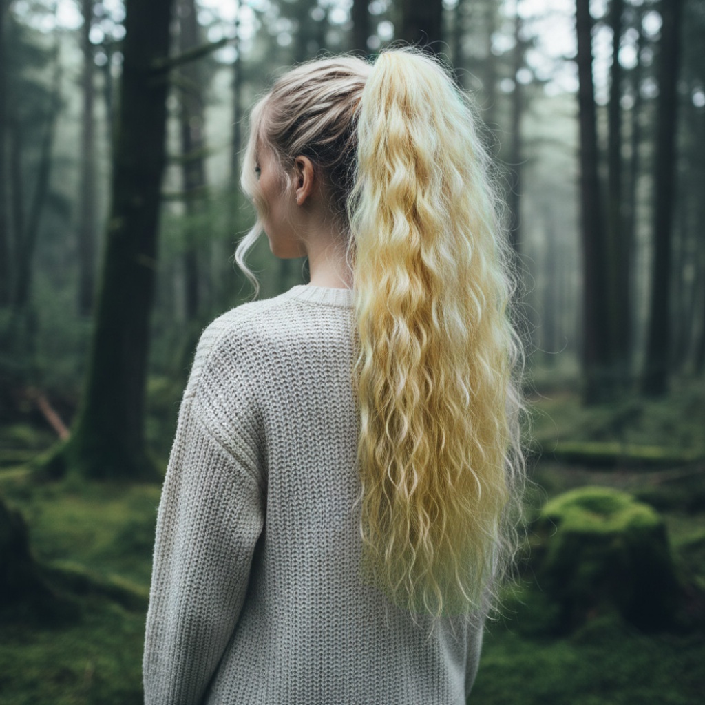 Bağlamalı Kabarık Dalgalı At Kuyruğu - Açık Platin