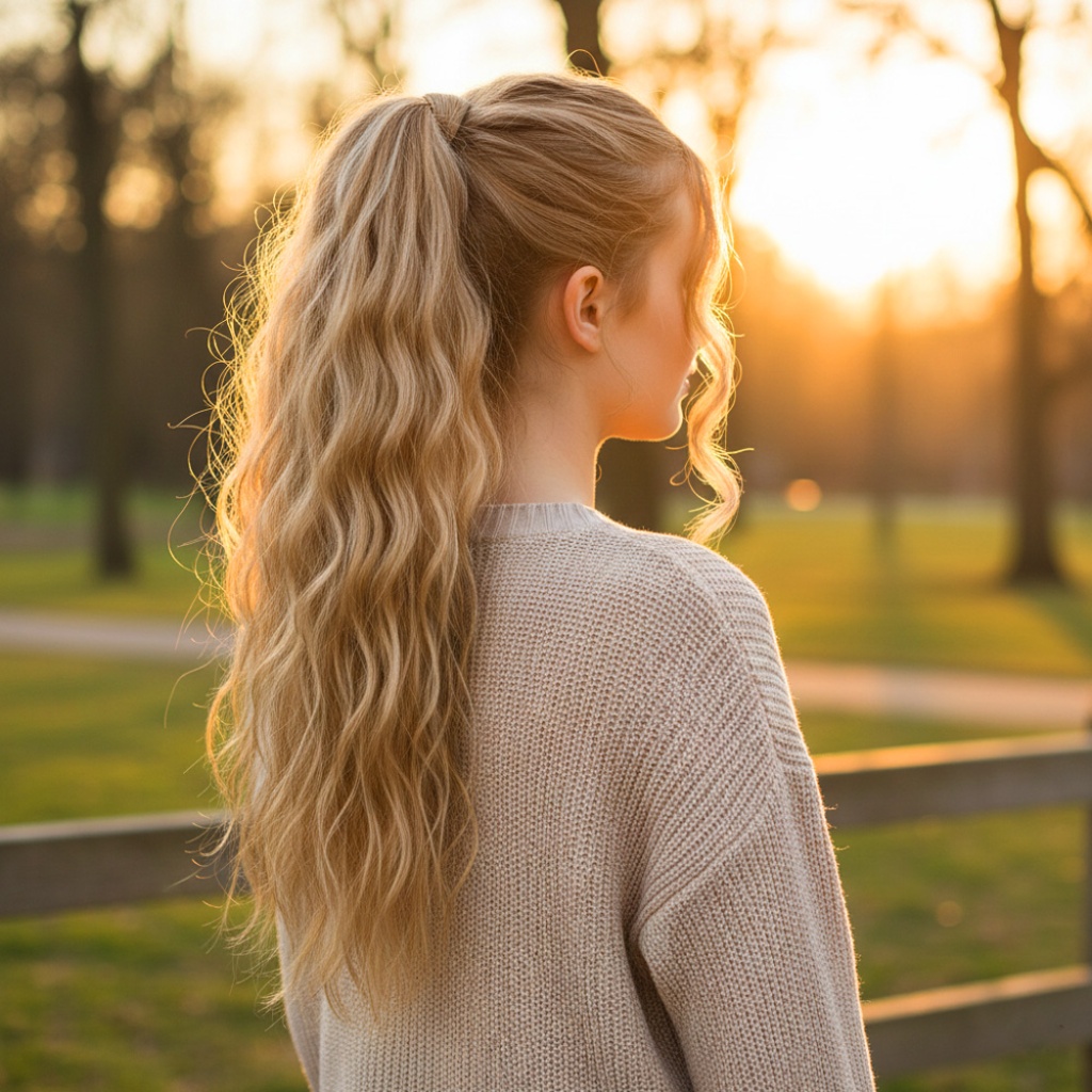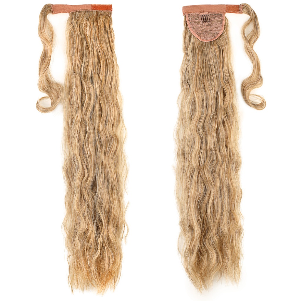 Bağlamalı Kabarık Dalgalı At Kuyruğu - Karamel Platin Röfleli
