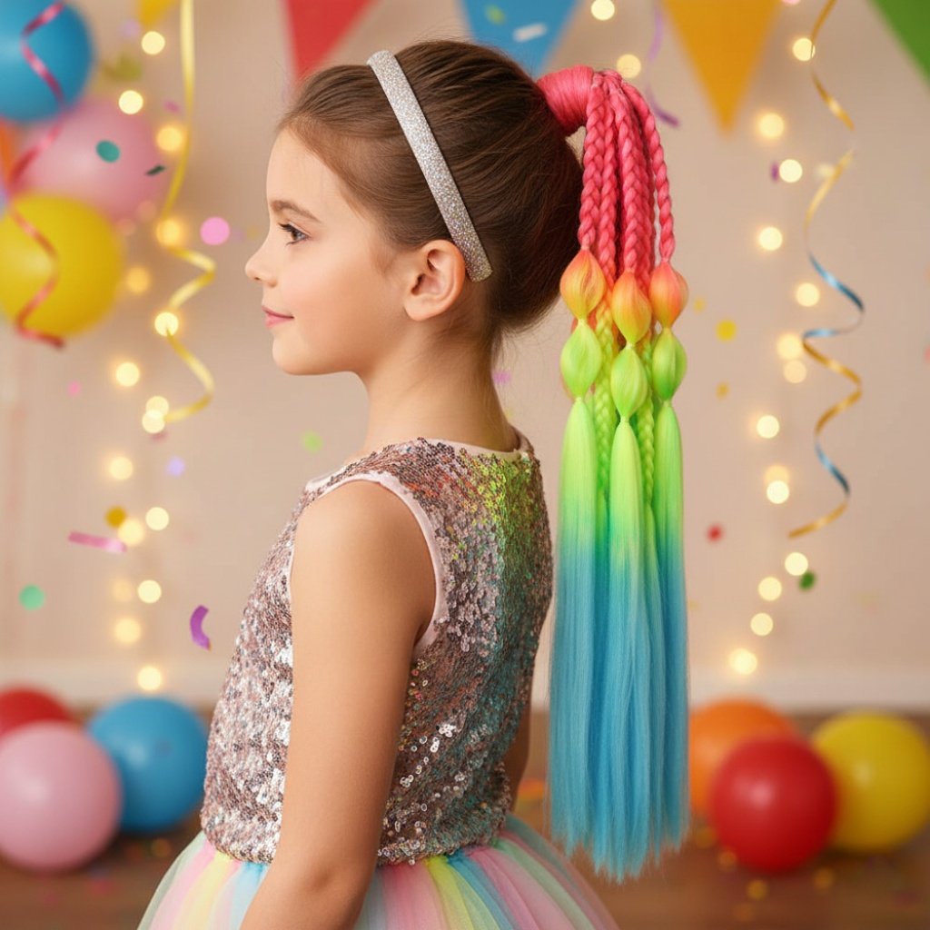 Balon ve Düz Salaş Örgülü Lastikli At Kuyruğu - ACM05
