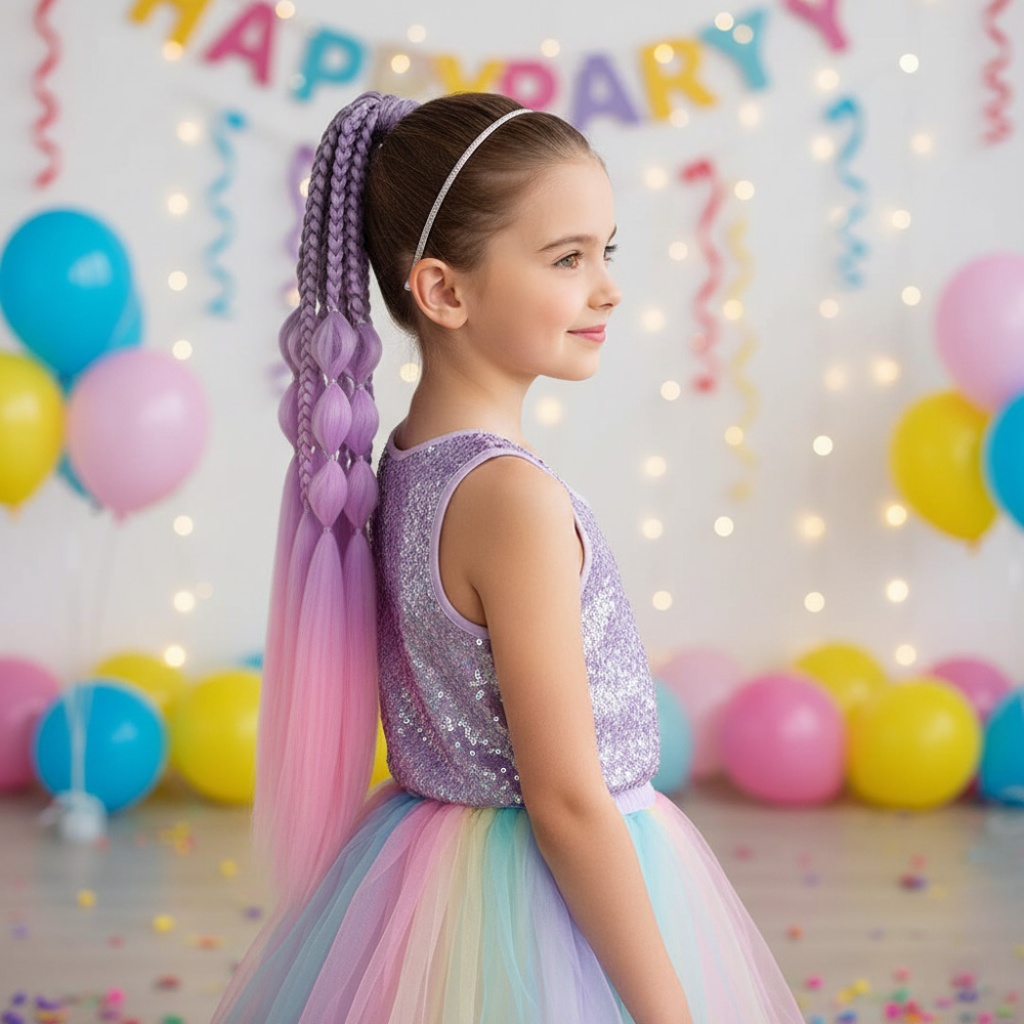 Balon ve Düz Salaş Örgülü Lastikli At Kuyruğu - ACM06