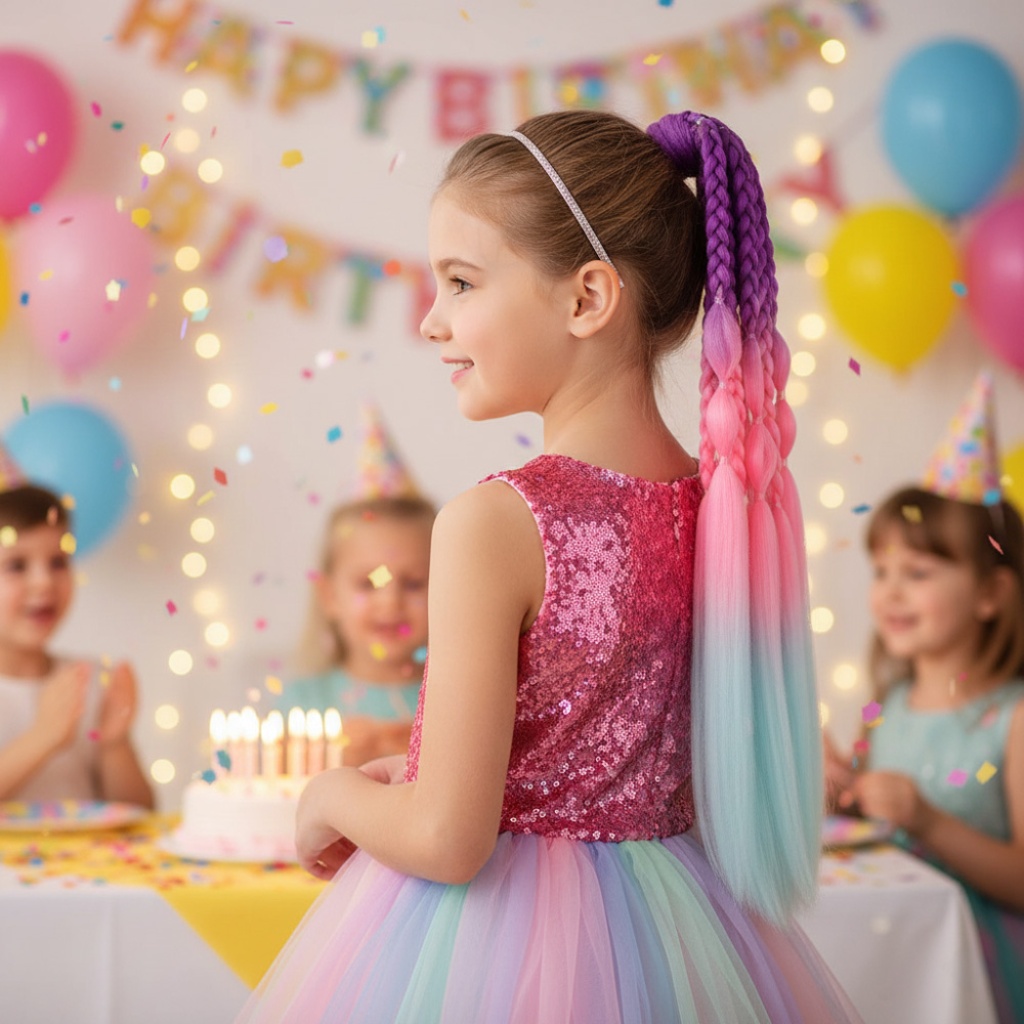 Balon ve Düz Salaş Örgülü Lastikli At Kuyruğu - ACM19