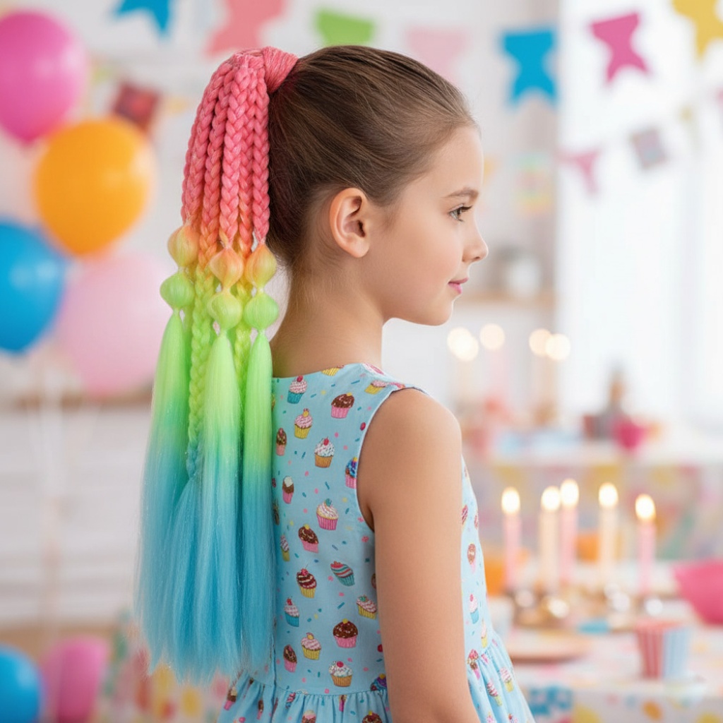 Balon ve Düz Salaş Örgülü Simli Lastikli At Kuyruğu - ACM05