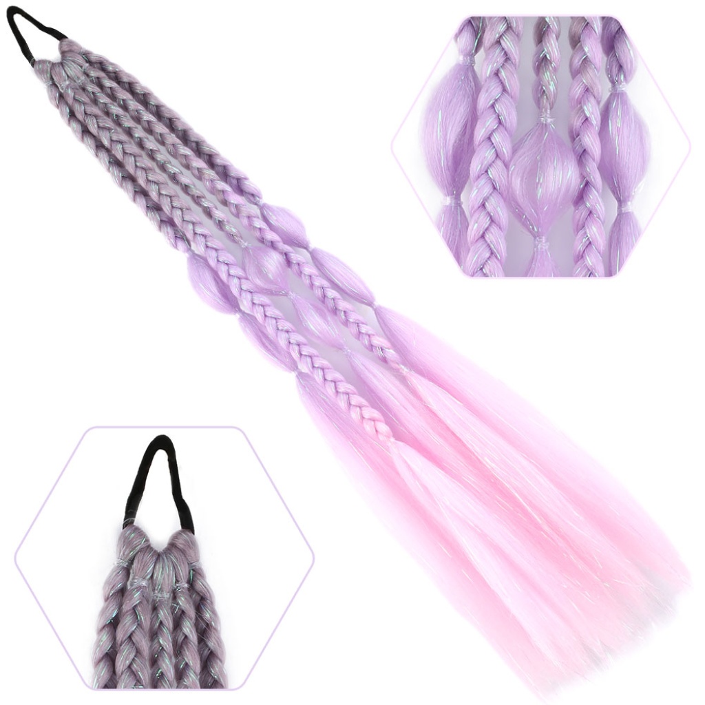 Balon ve Düz Salaş Örgülü Simli Lastikli At Kuyruğu - ACM06