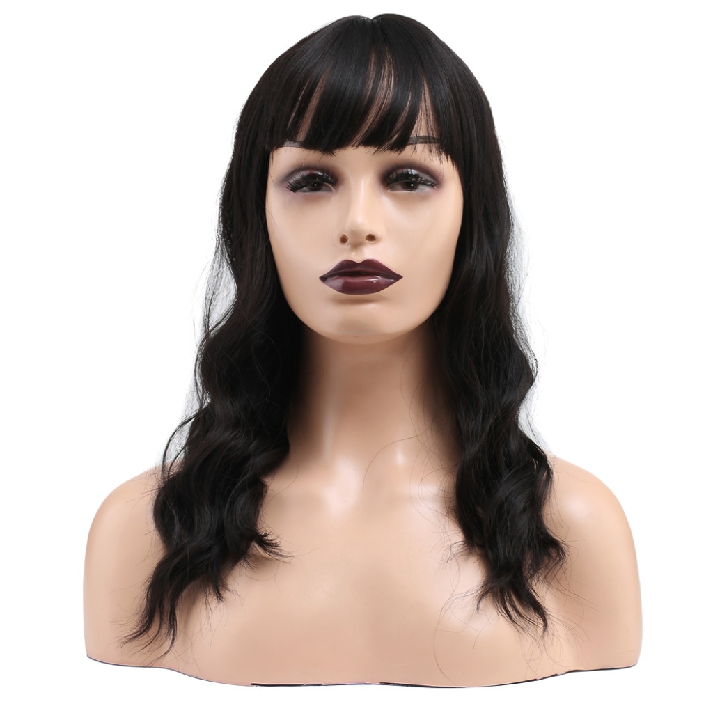 Dalgalı Kısa Perçemli Fiber Sentetik Peruk - Koyu Kestane