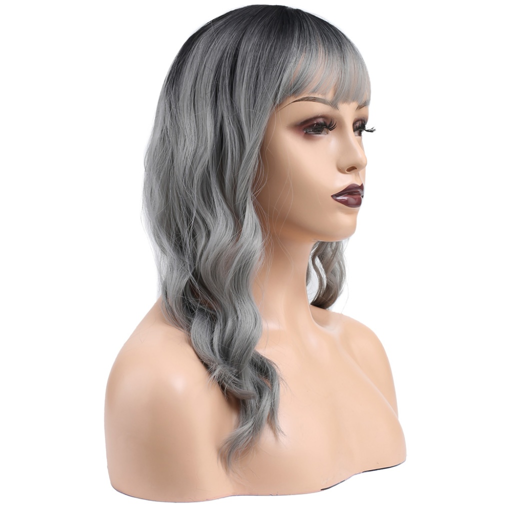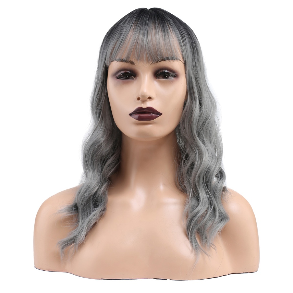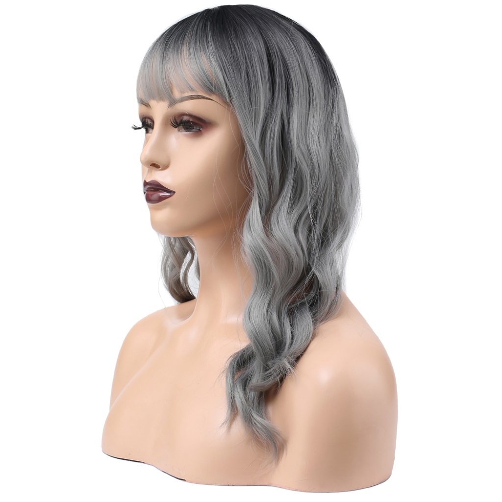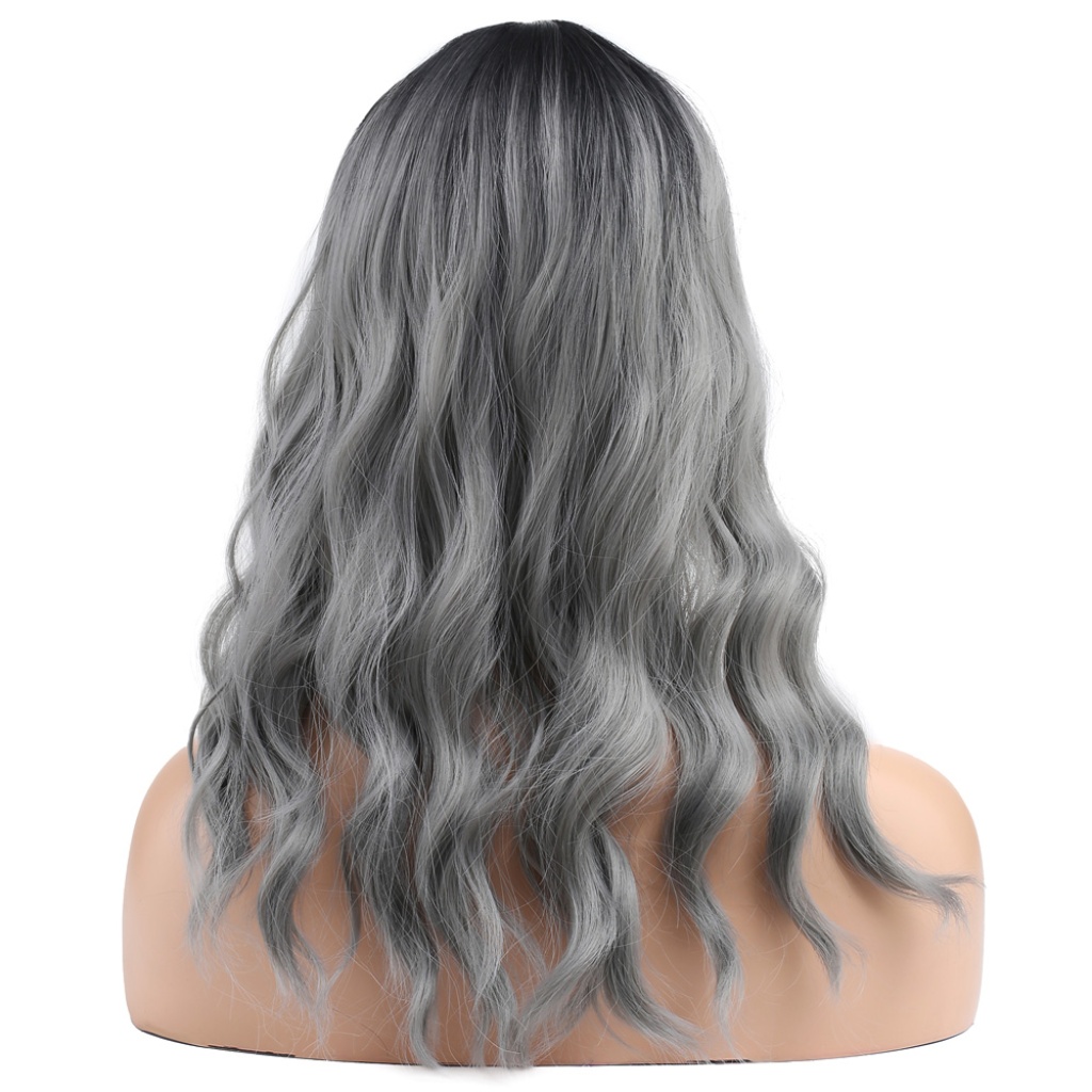 Dalgalı Kısa Perçemli Fiber Sentetik Peruk - Siyah / Gri Ombreli