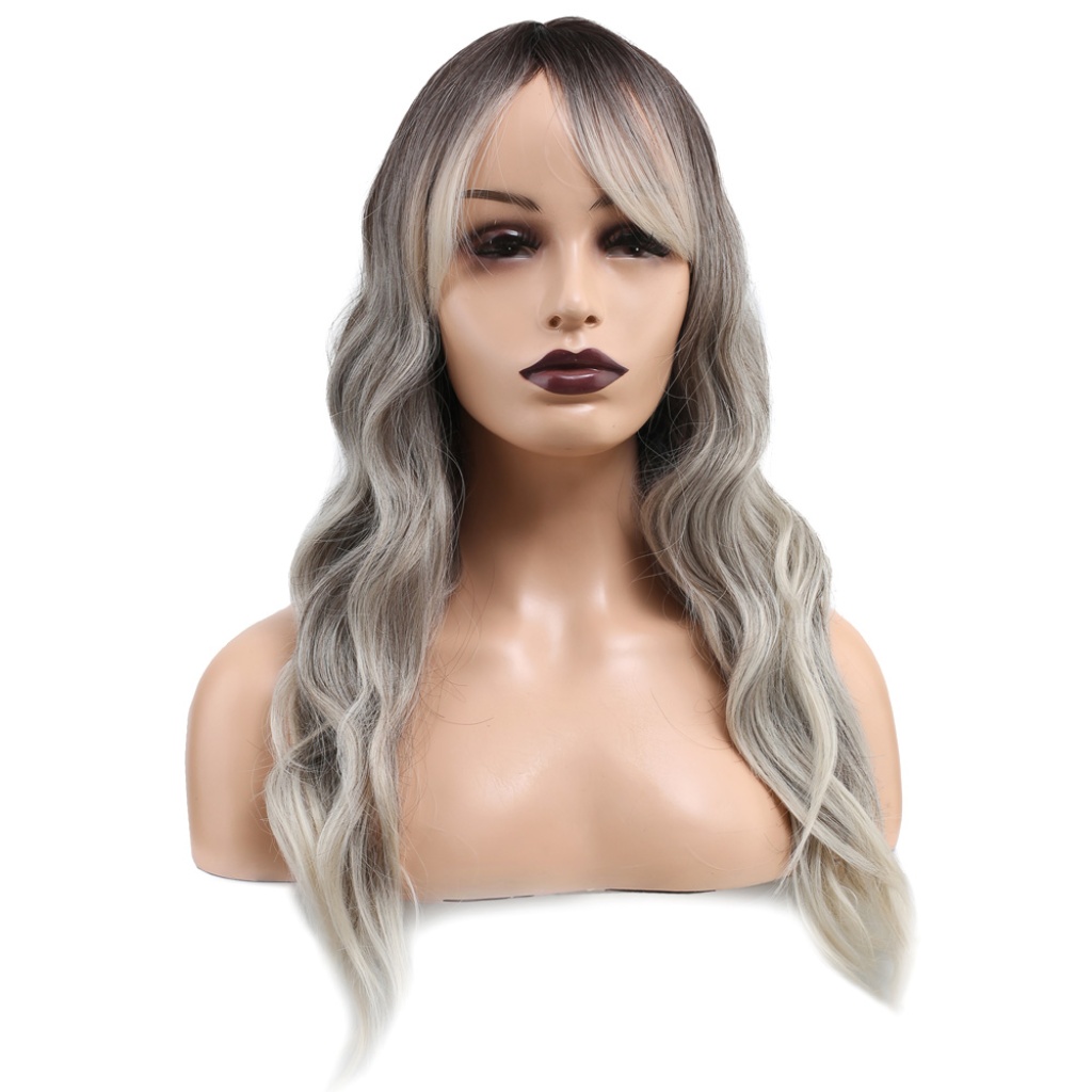 Dalgalı Perçemli Fiber Sentetik Orta Boy Peruk - Ombre ve Röfleli
