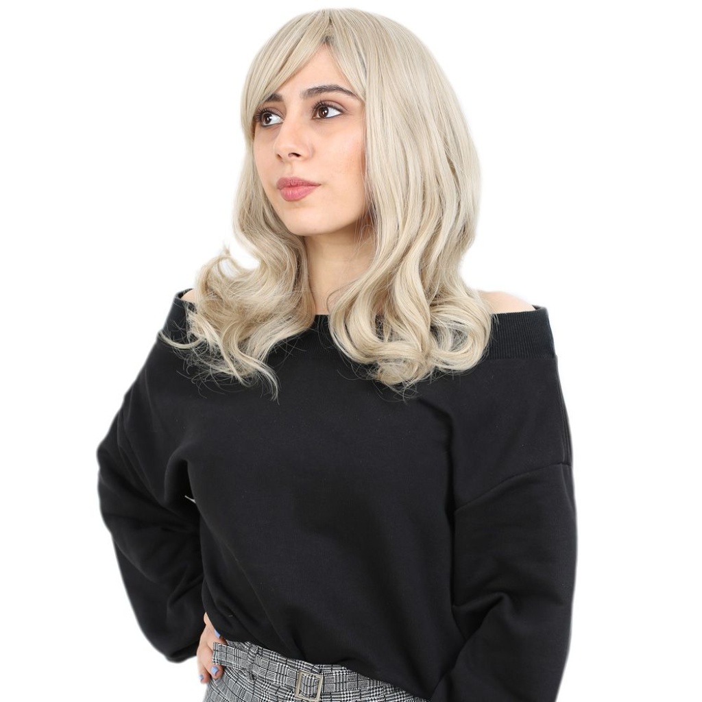 Dalgalı Perçemli Orta Boy Fiber Sentetik Peruk - Balköpüğü / Platin Röfleli