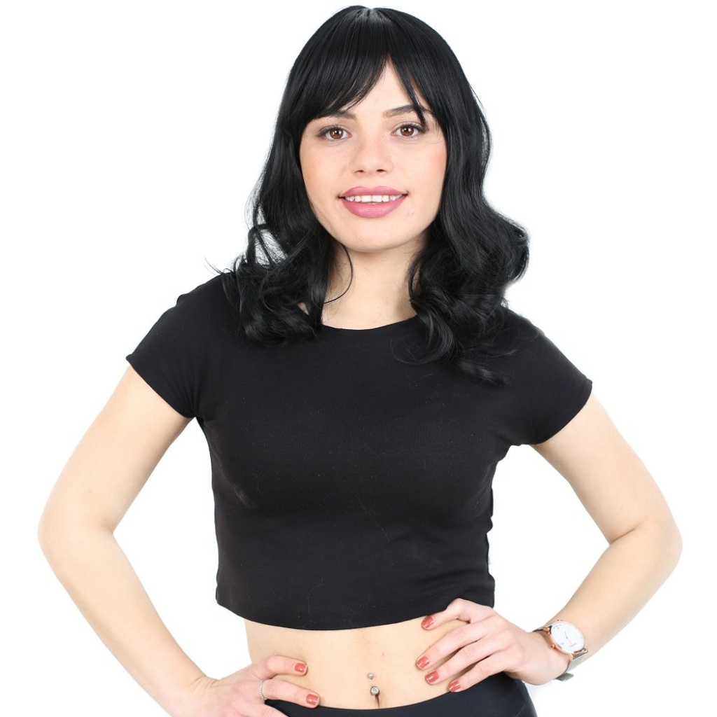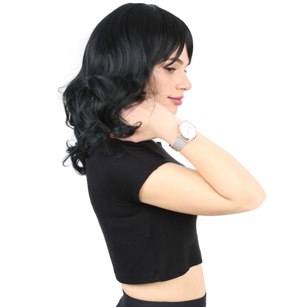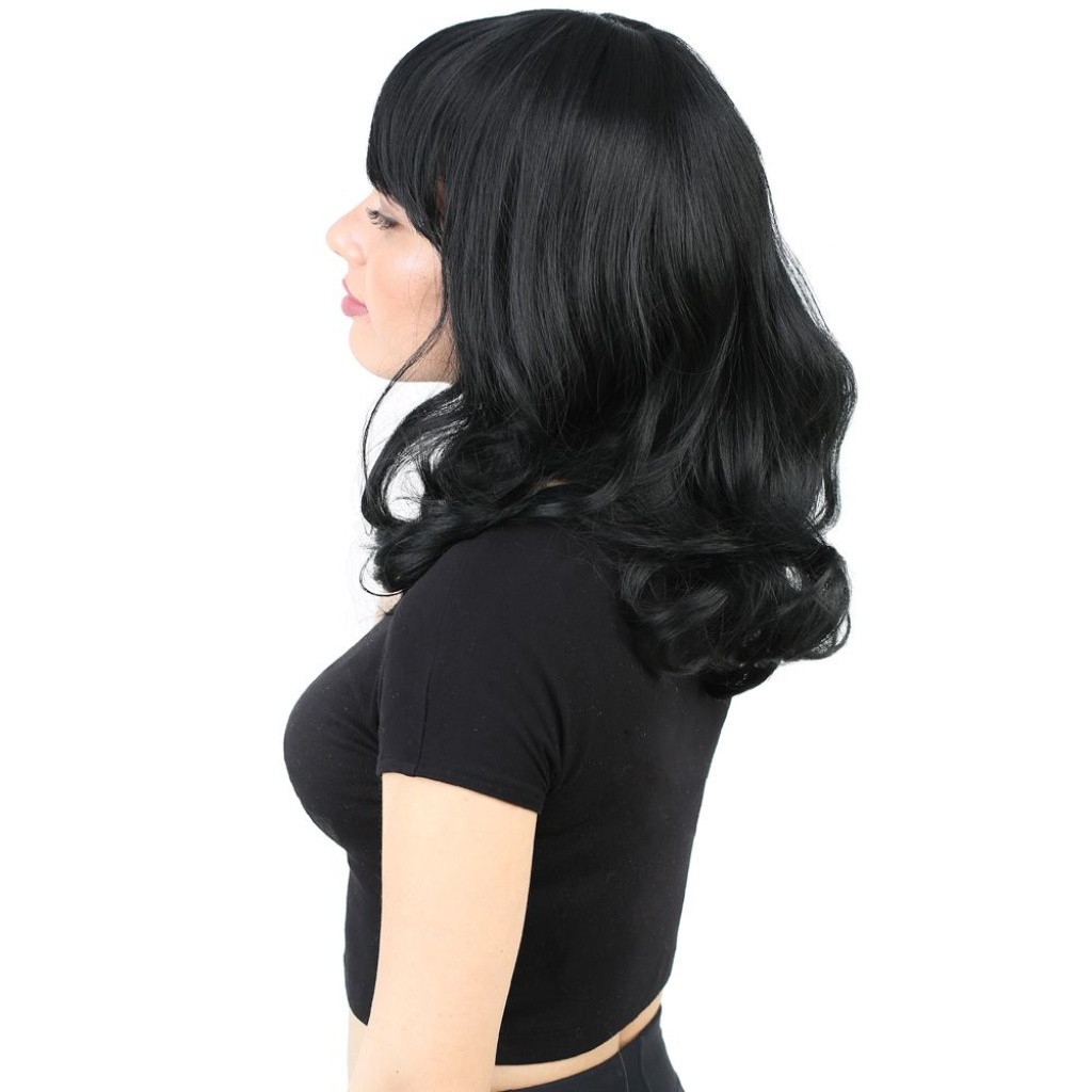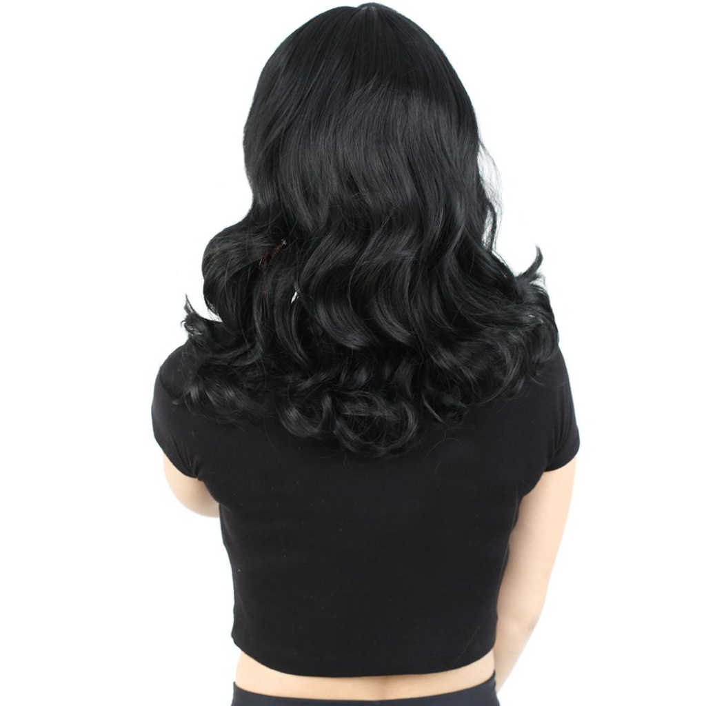 Dalgalı Perçemli Orta Boy Fiber Sentetik Peruk - Siyah
