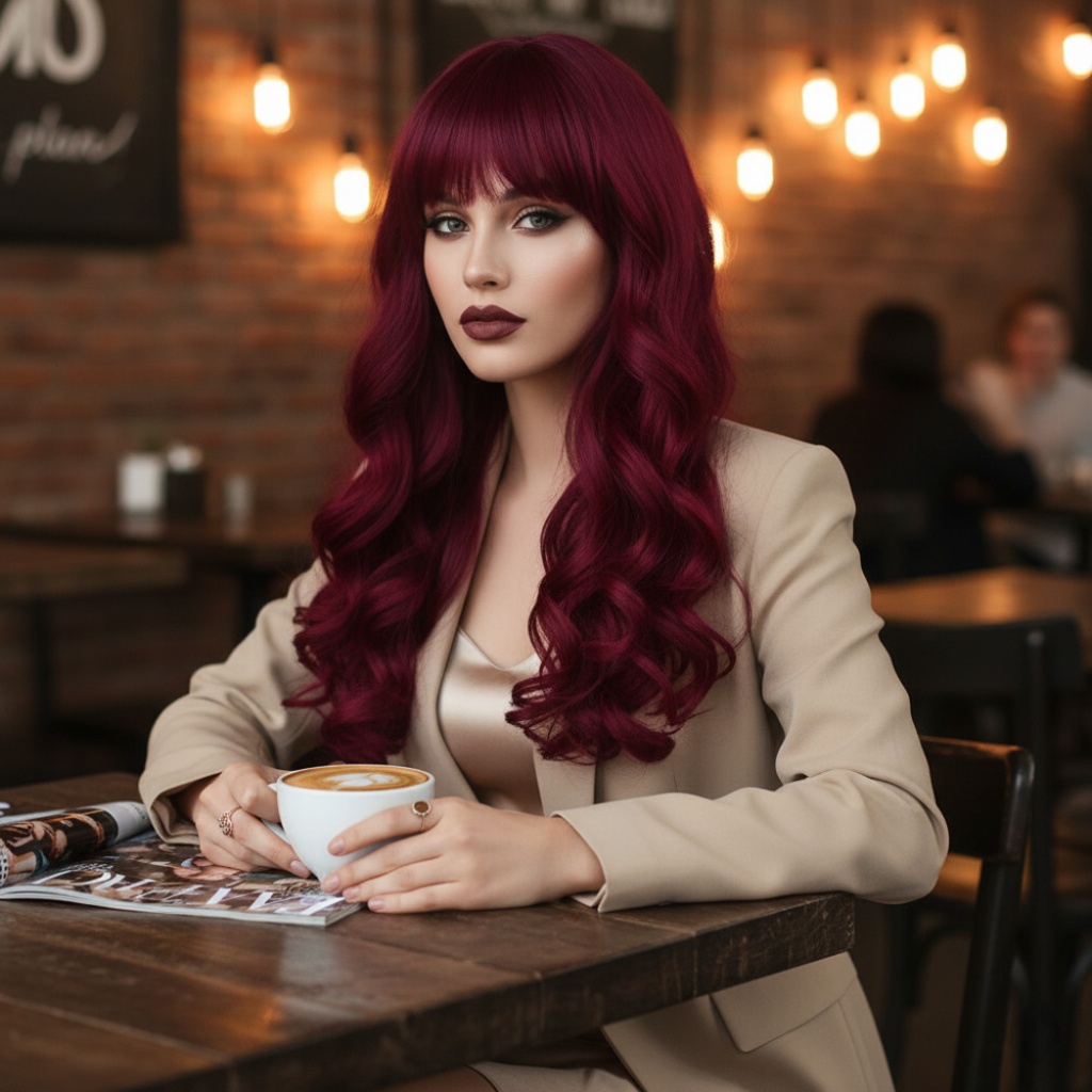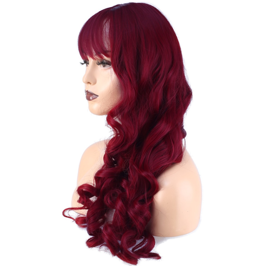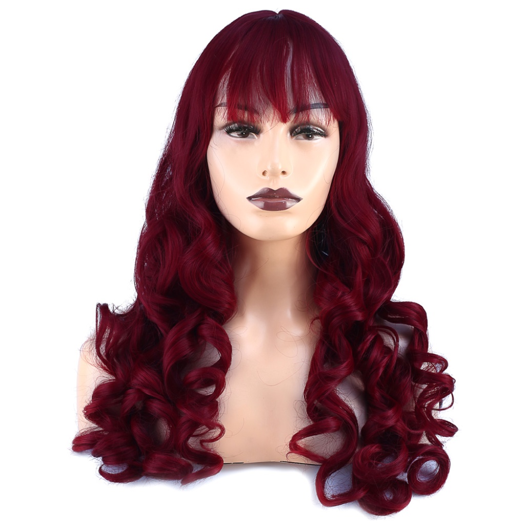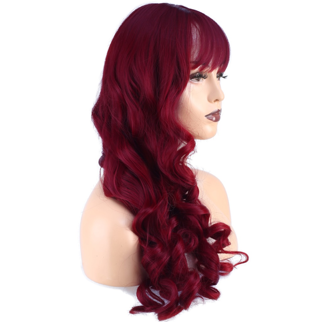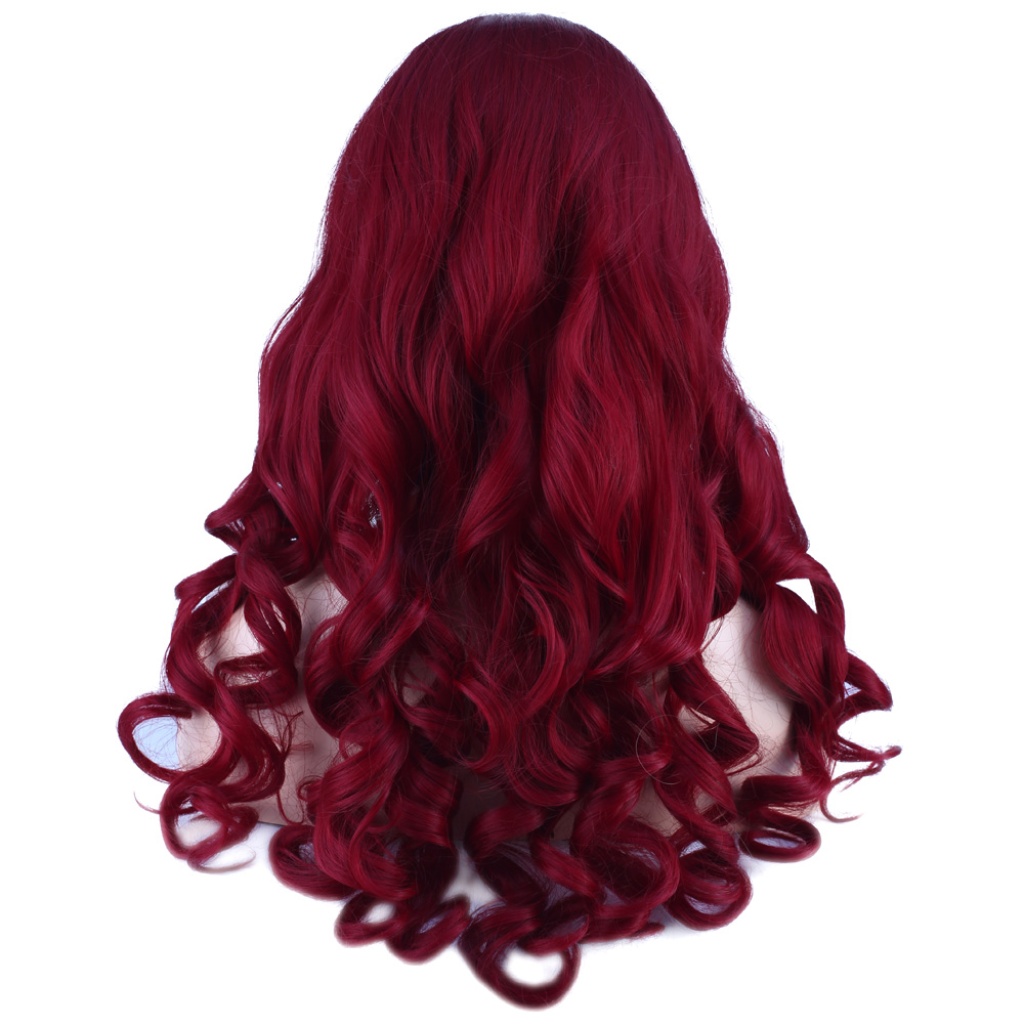 Dalgalı Perçemli Uzun Fiber Sentetik Peruk - Kızıl