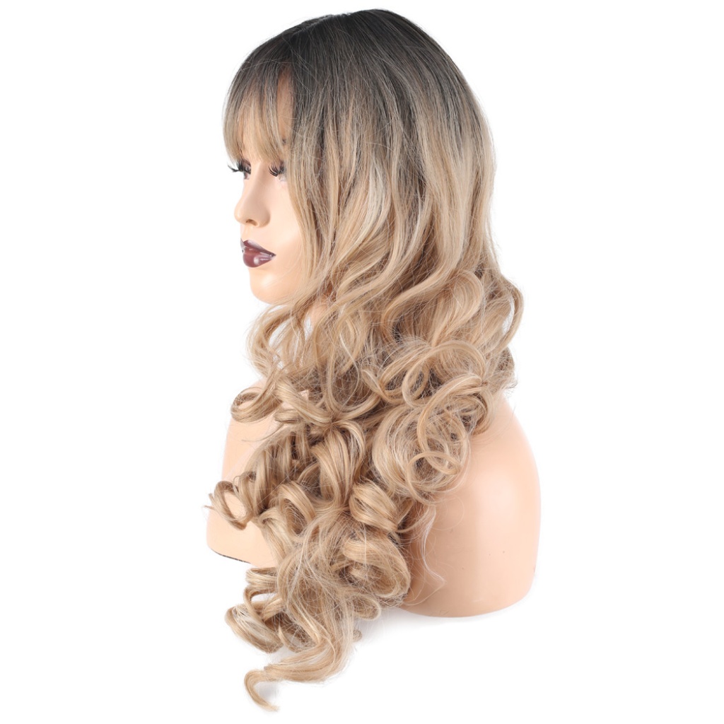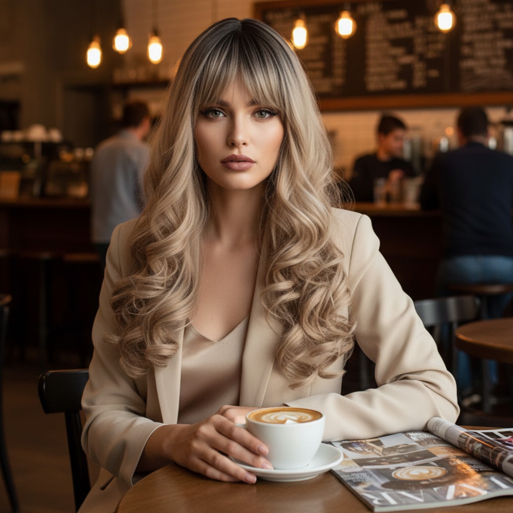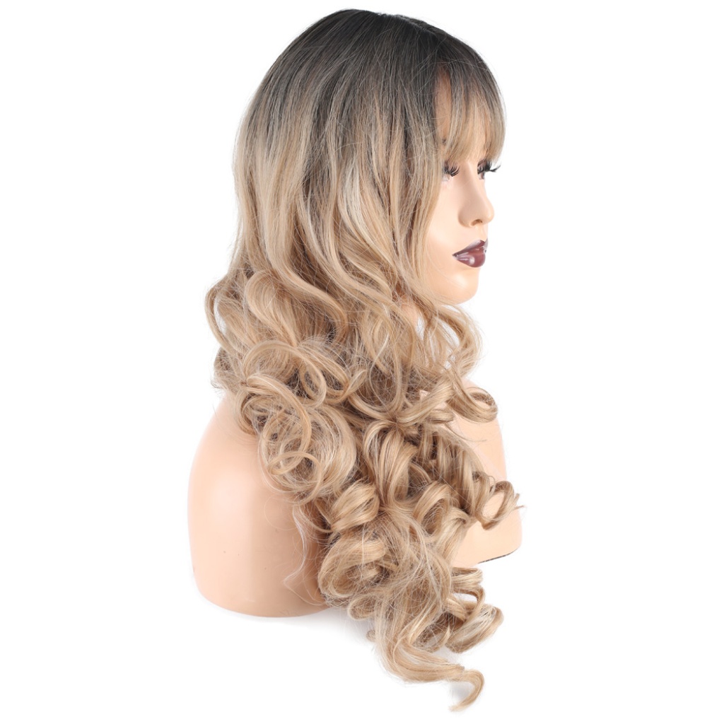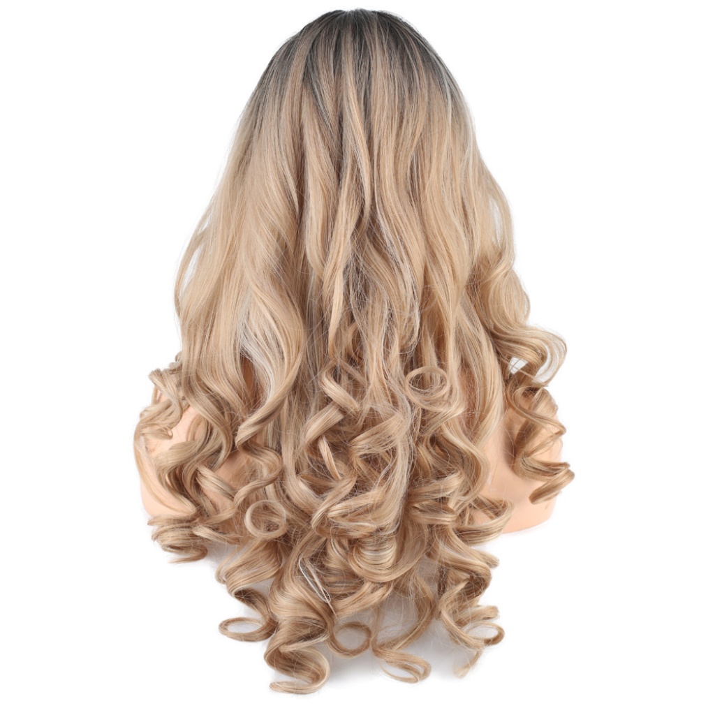 Dalgalı Perçemli Uzun Fiber Sentetik Peruk - Siyah / Balköpüğü Ombreli
