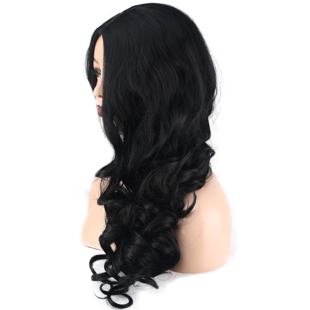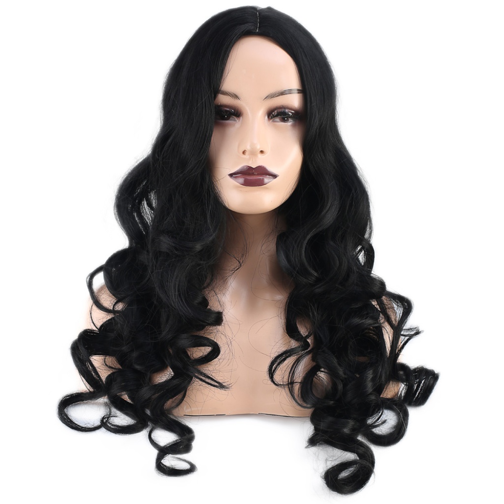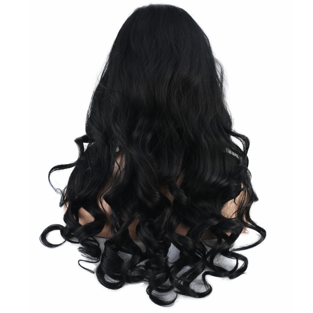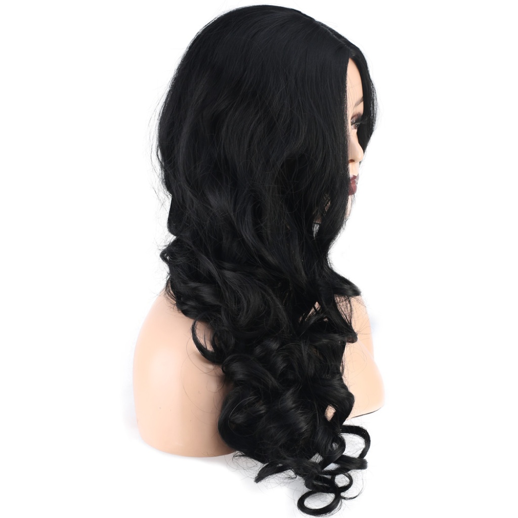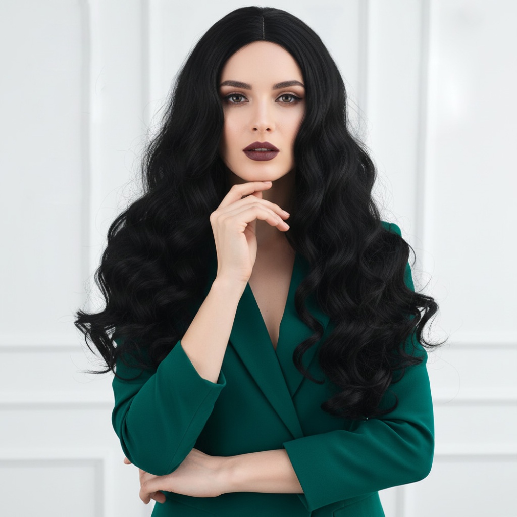 Dalgalı Perçemsiz Uzun Fiber Sentetik Peruk - Koyu Kestane