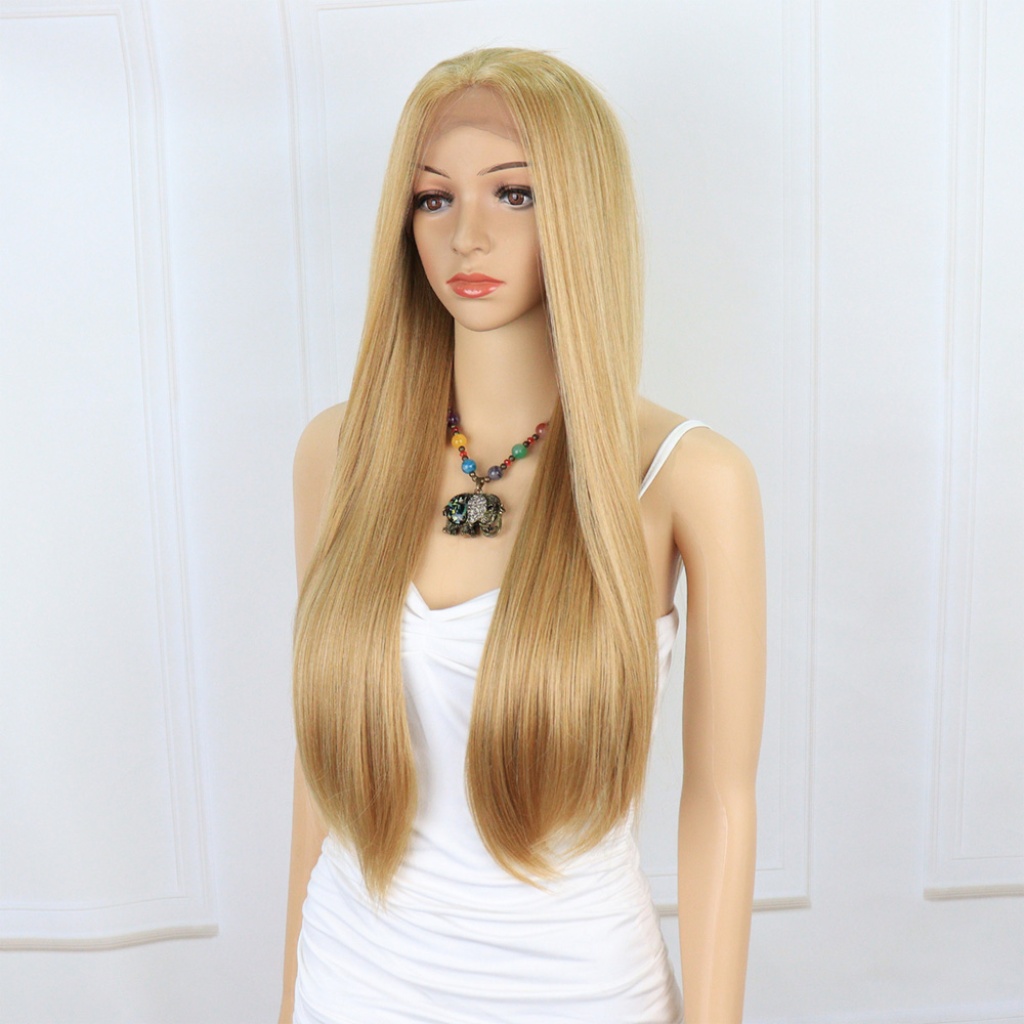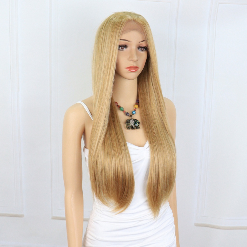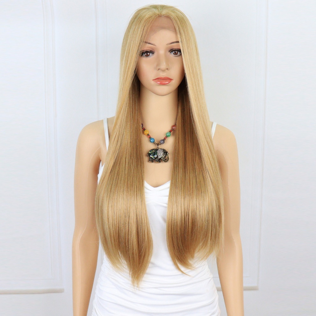 Düz Fiber Sentetik Tül Peruk - Karamel / Platin Röfleli