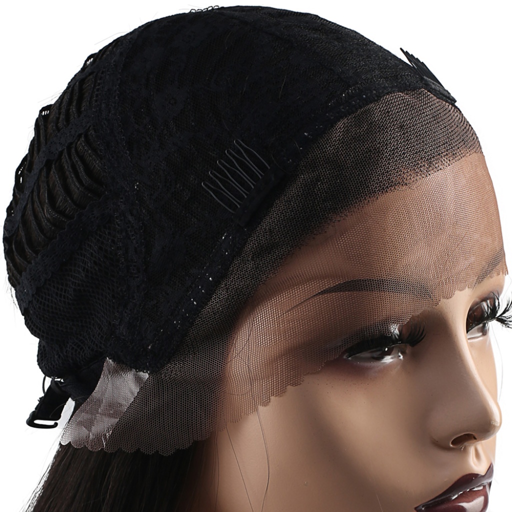 Düz Fiber Sentetik Tül Peruk - Siyah / Karamel Ombreli
