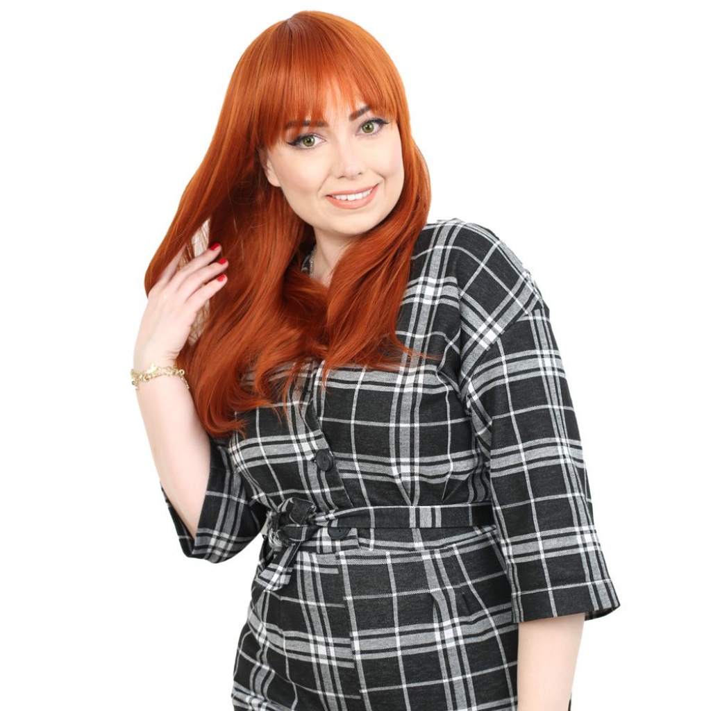 Düz Perçemli Orta Boy Fiber Sentetik Peruk - Bakır