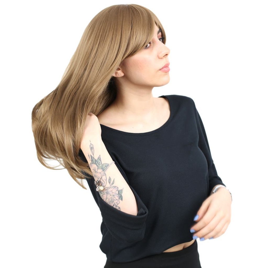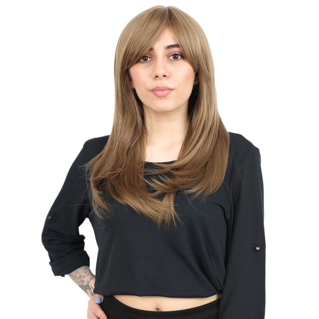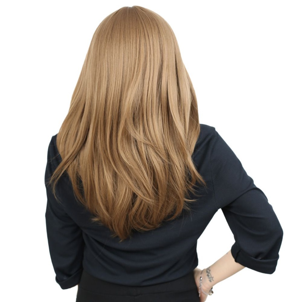Düz Perçemli Orta Boy Fiber Sentetik Peruk - Bebek Kumralı
