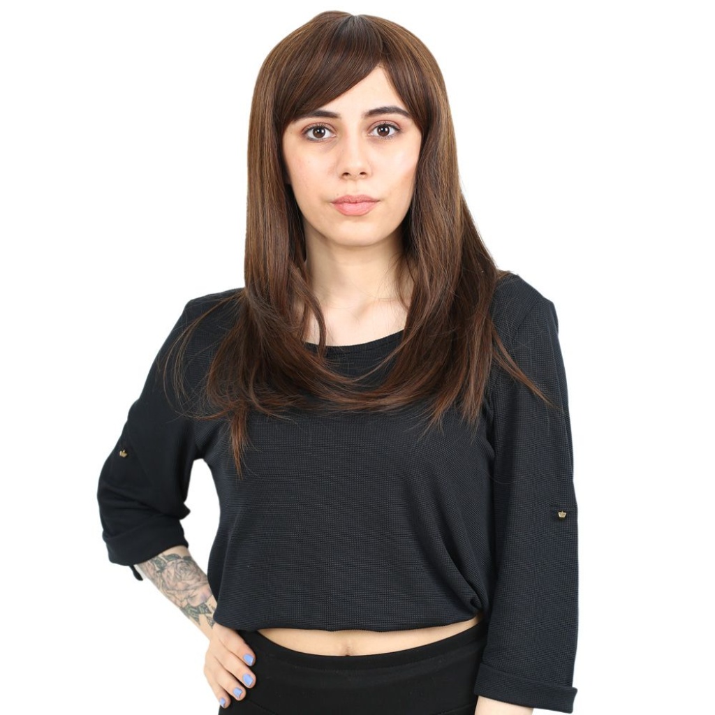 Düz Perçemli Orta Boy Fiber Sentetik Peruk - Kahve Karamel