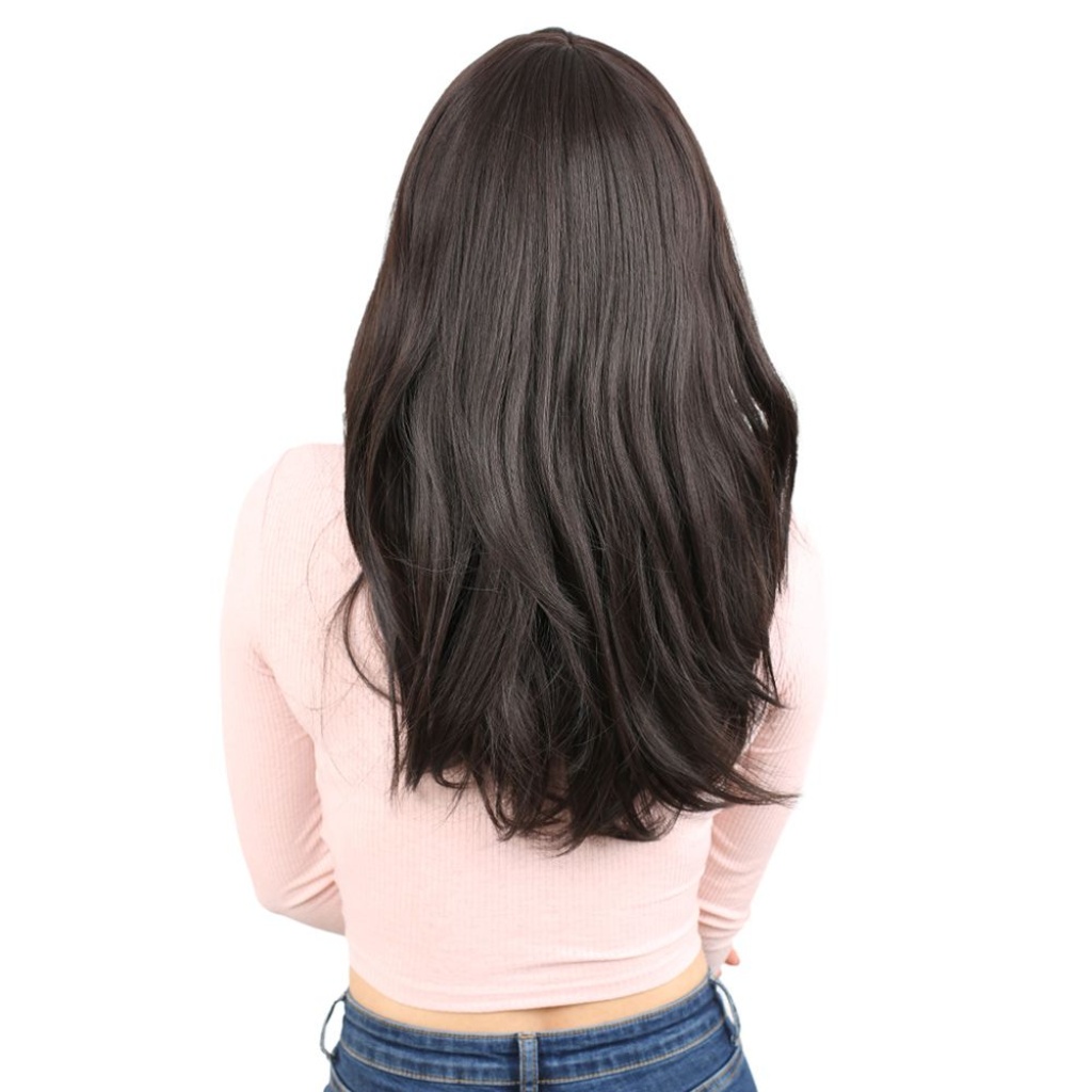 Düz Perçemli Orta Boy Fiber Sentetik Peruk - Kahverengi