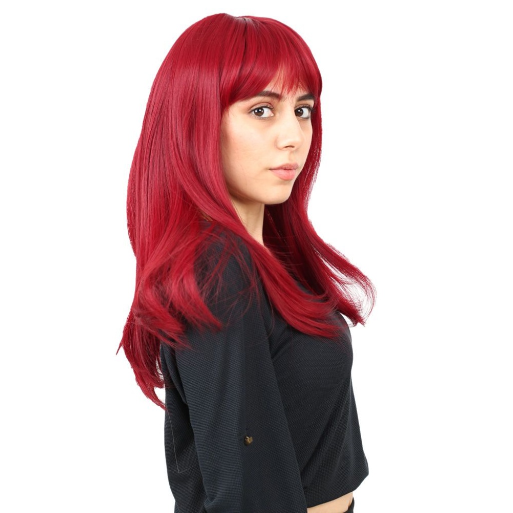 Düz Perçemli Orta Boy Fiber Sentetik Peruk - Kızıl
