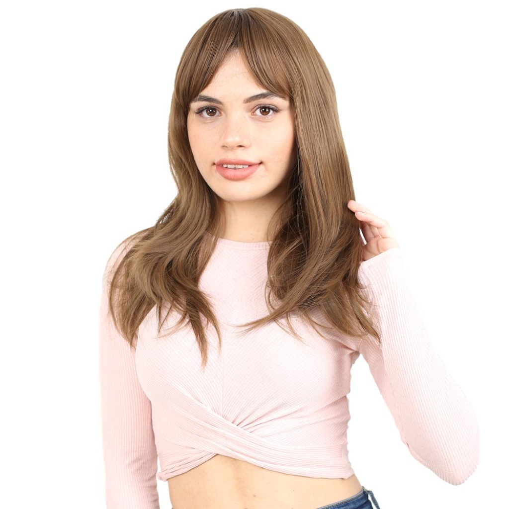 Düz Perçemli Orta Boy Fiber Sentetik Peruk - Kumral