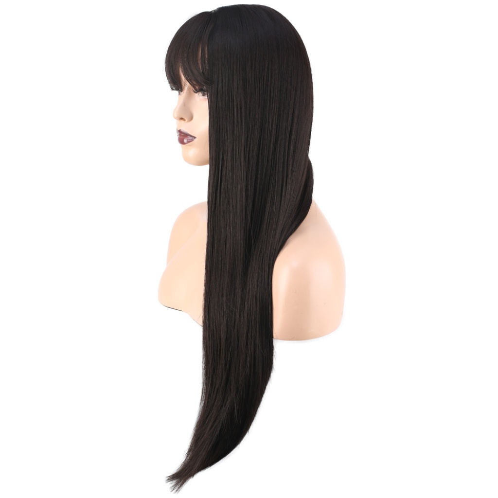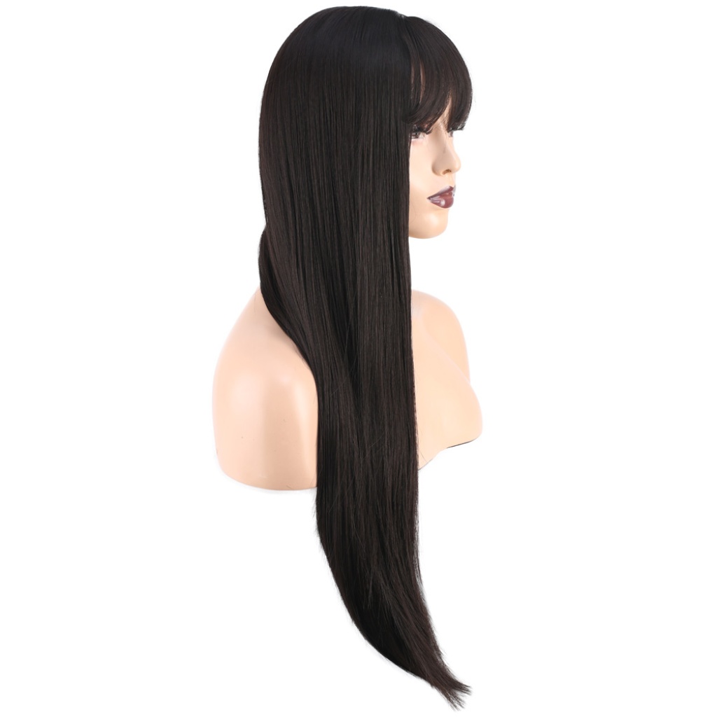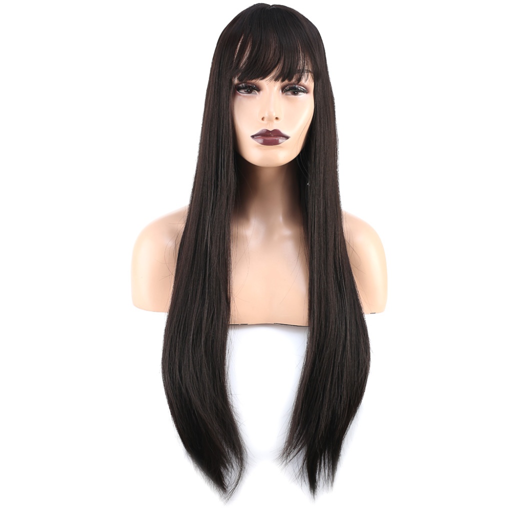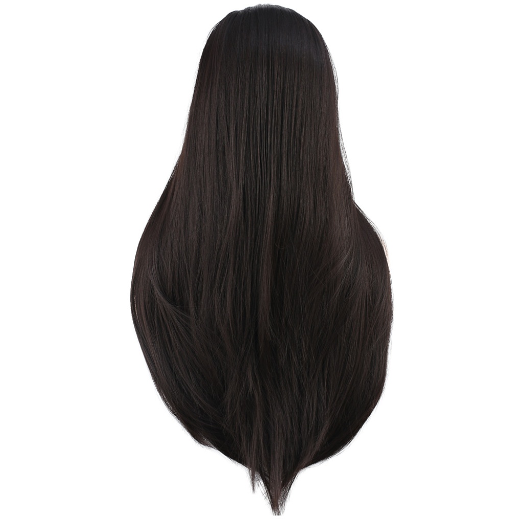 Düz Perçemli Orta Boy Fiber Sentetik Peruk - Kahverengi