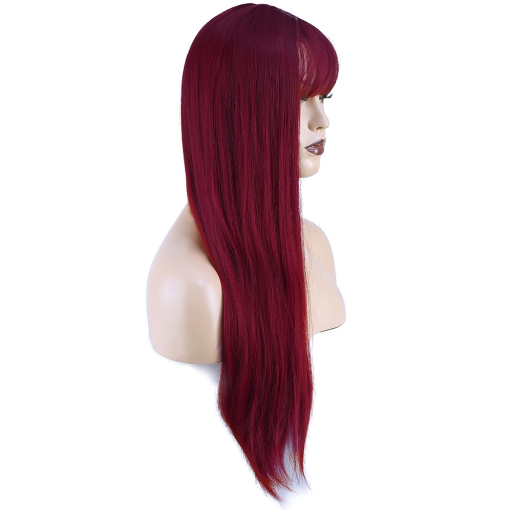 Düz Perçemli Orta Boy Fiber Sentetik Peruk - Kızıl