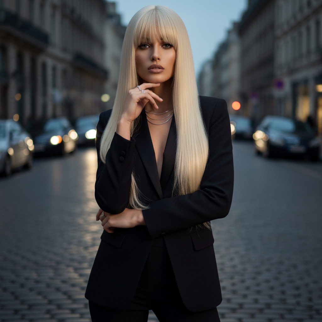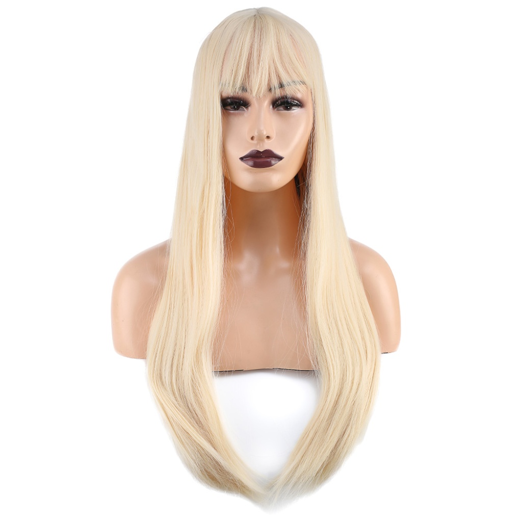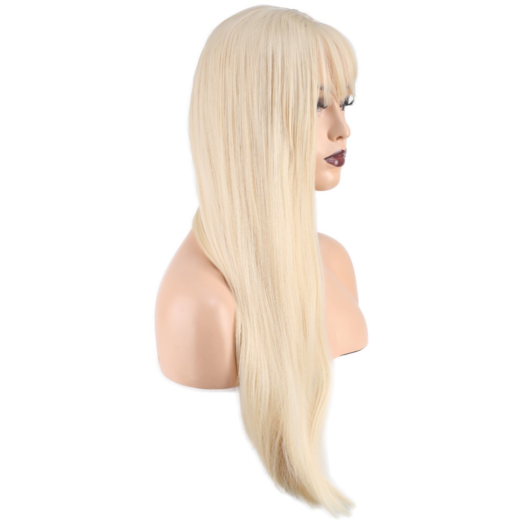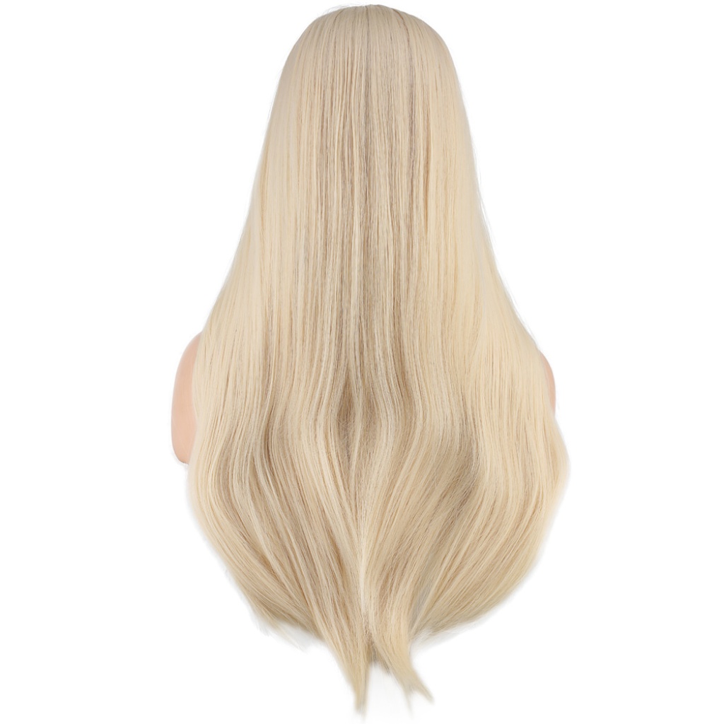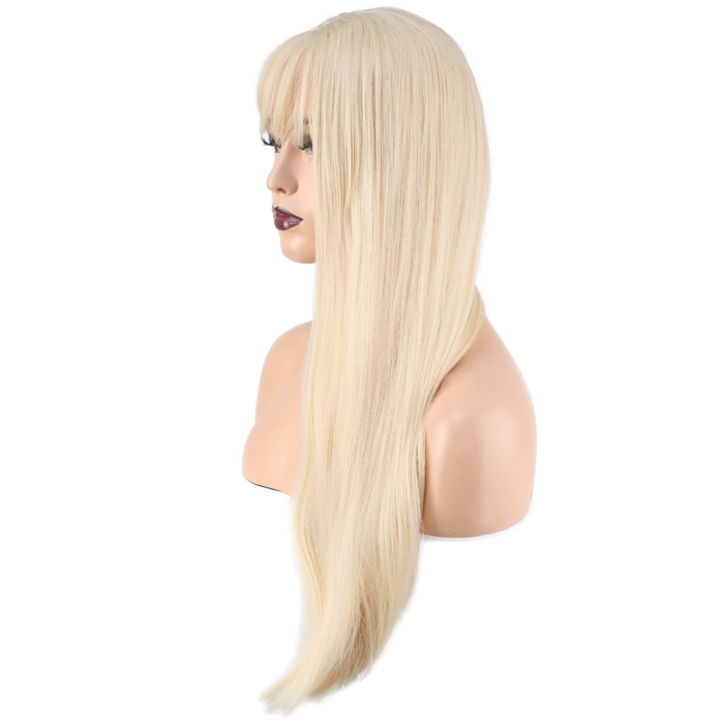 Düz Perçemli Orta Boy Fiber Sentetik Peruk - Platin