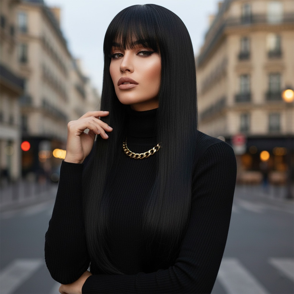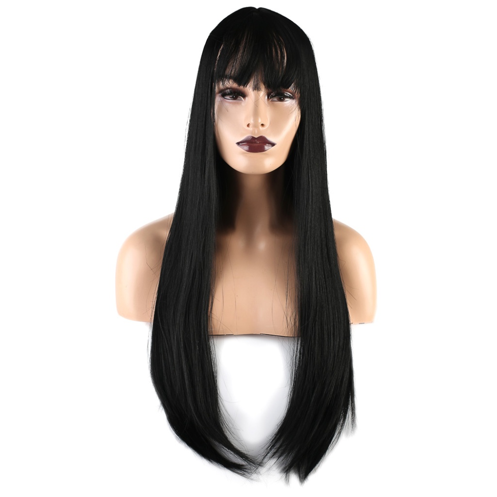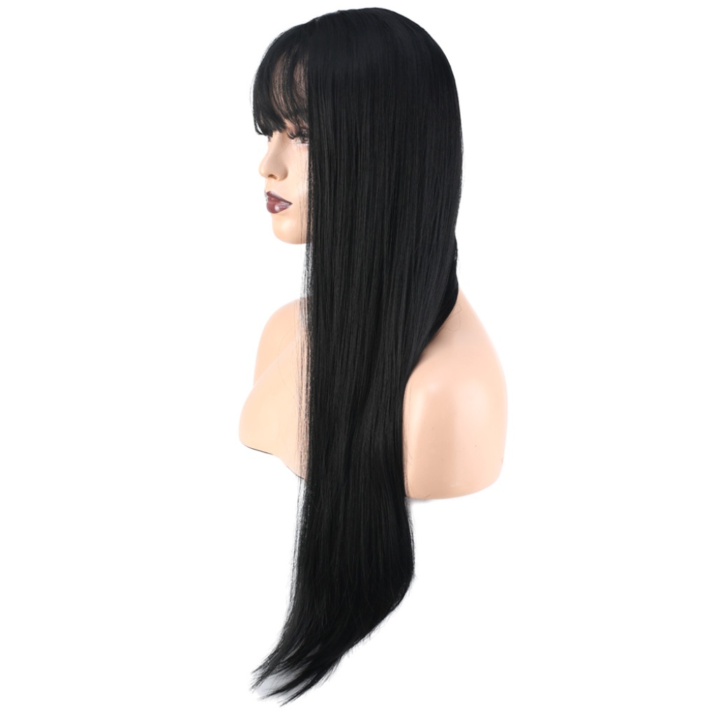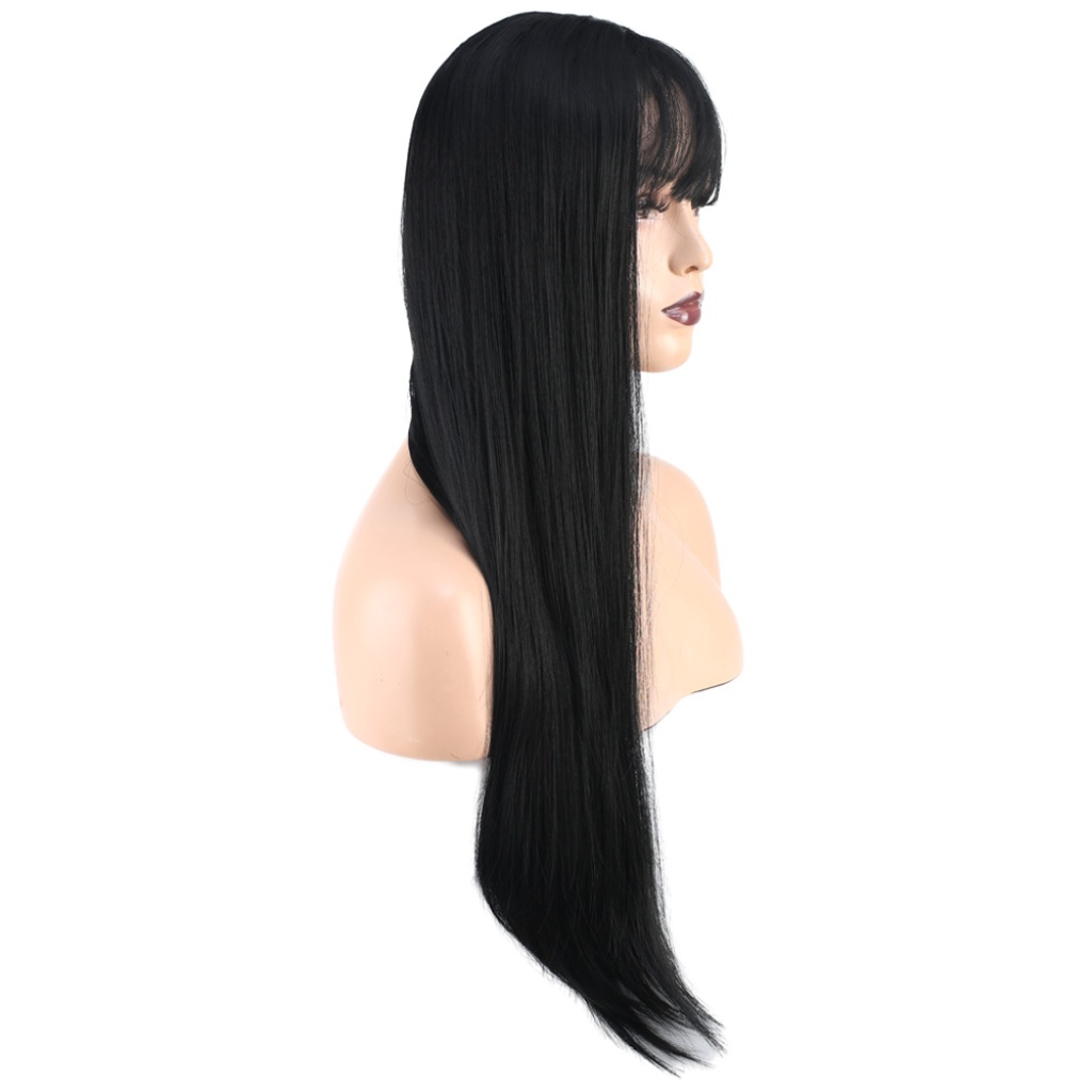 Düz Perçemli Orta Boy Fiber Sentetik Peruk - Siyah