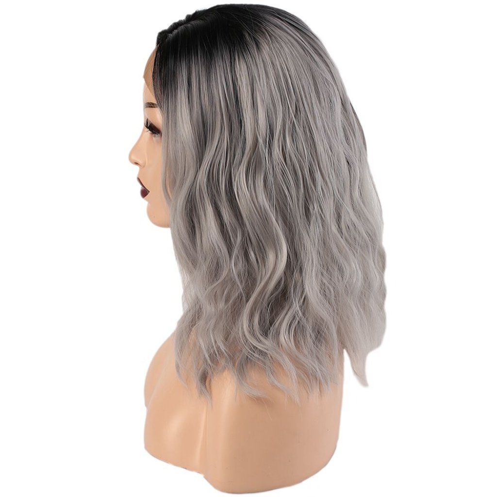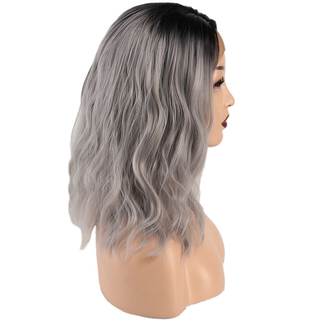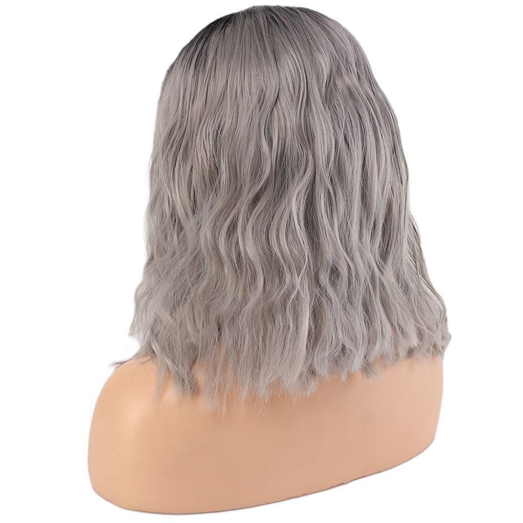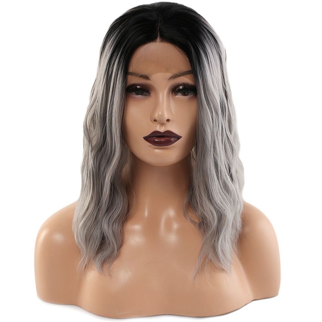 Fiber Sentetik Dalgalı Kısa Tül Peruk - Siyah Gri Ombreli