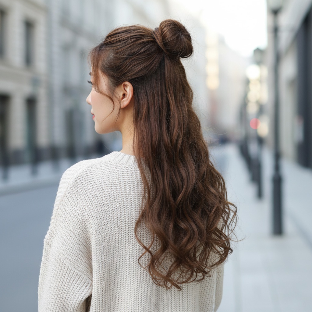 Fiber Sentetik Dalgalı Yarım Ay + 2 Yan Çıt Çıt - Kumral