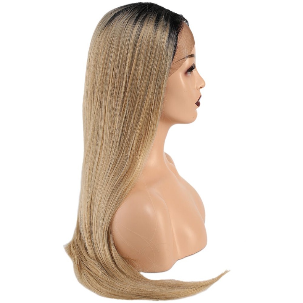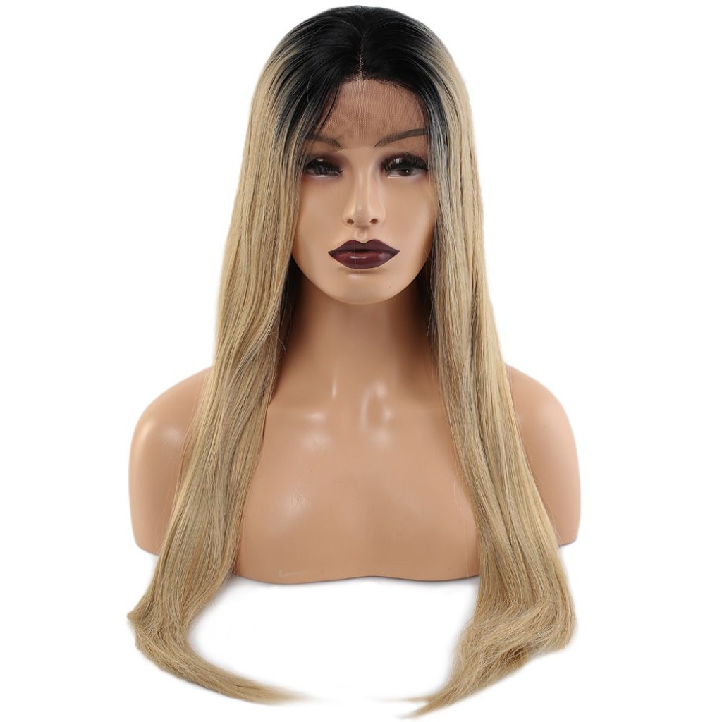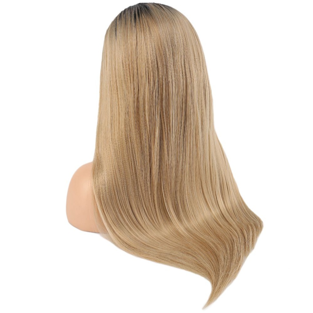 Fiber Sentetik Düz Uzun Tül Peruk - Siyah Balköpüğü Ombreli
