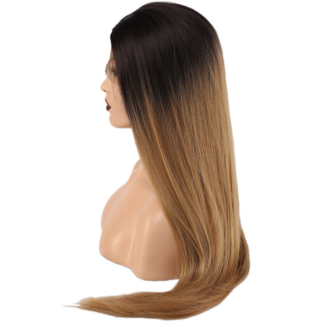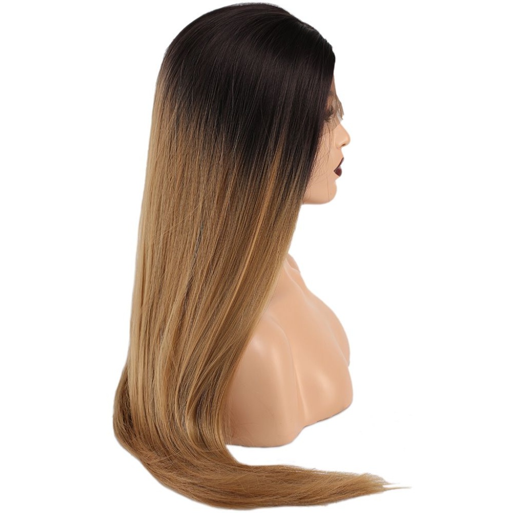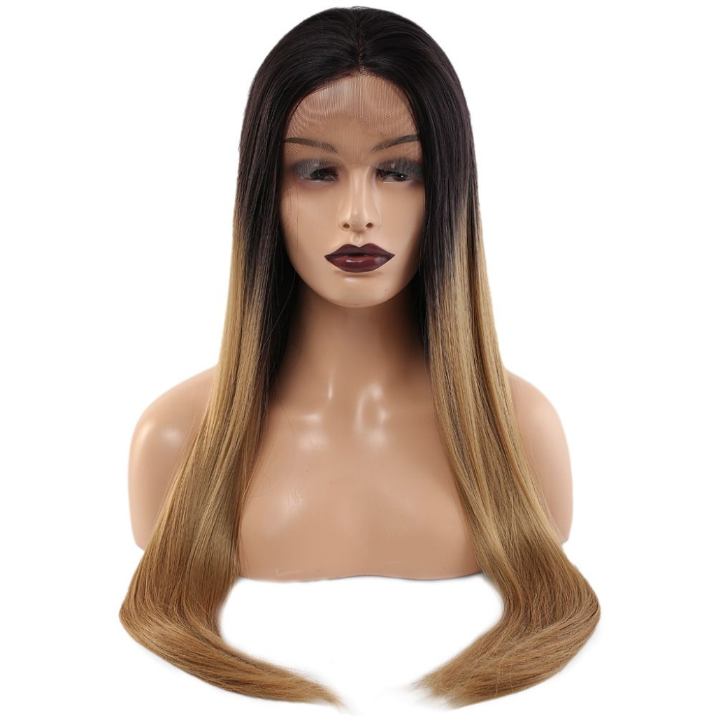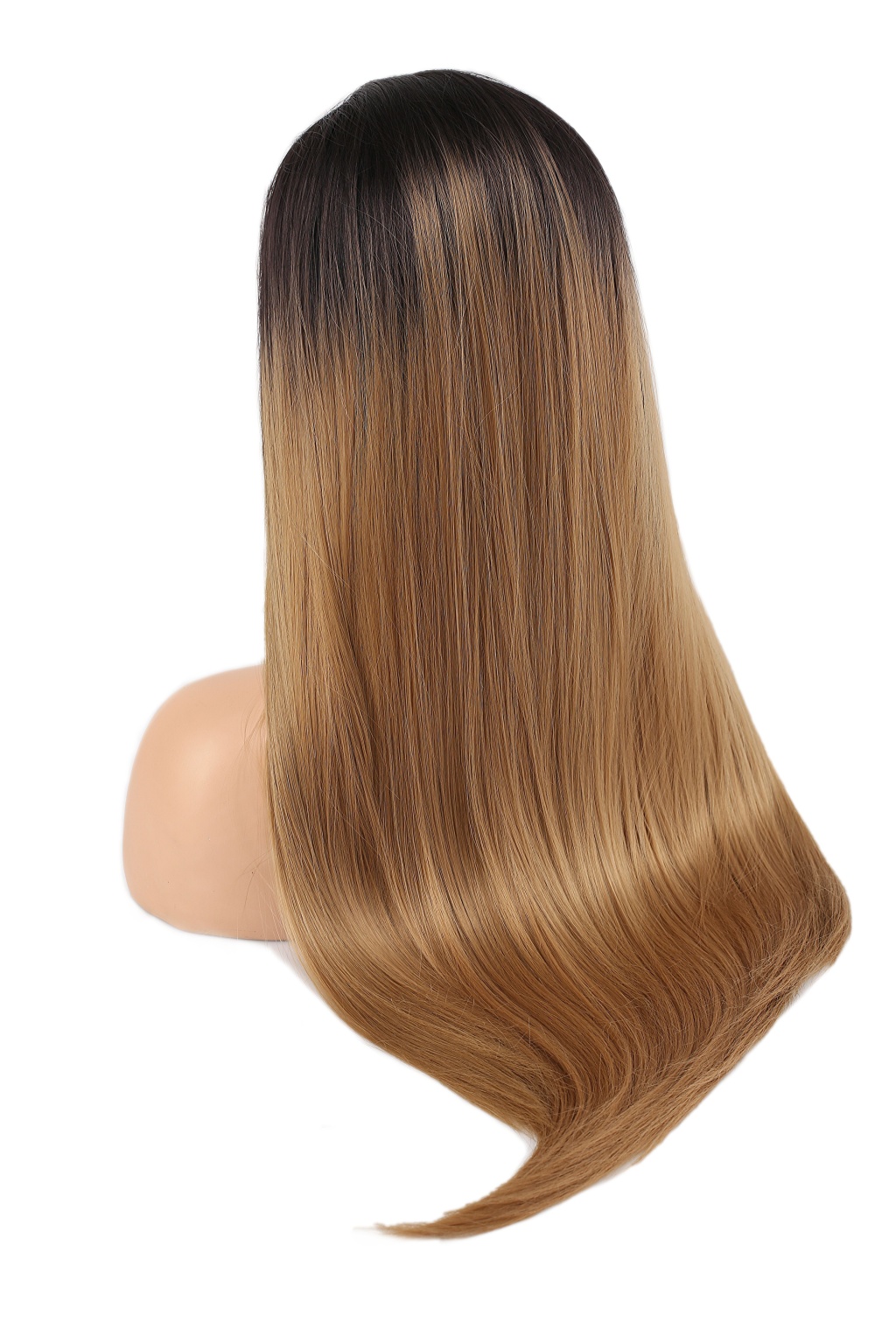 Fiber Sentetik Düz Uzun Tül Peruk - Siyah Karamel Orta Ombreli