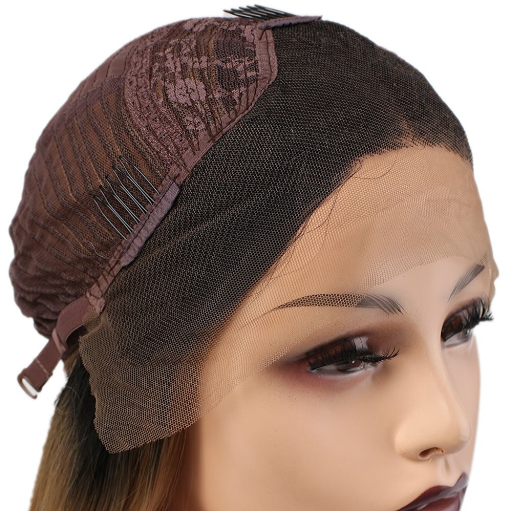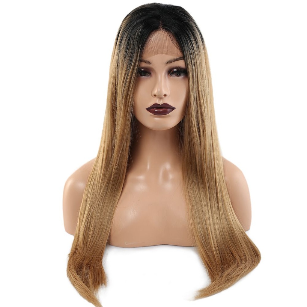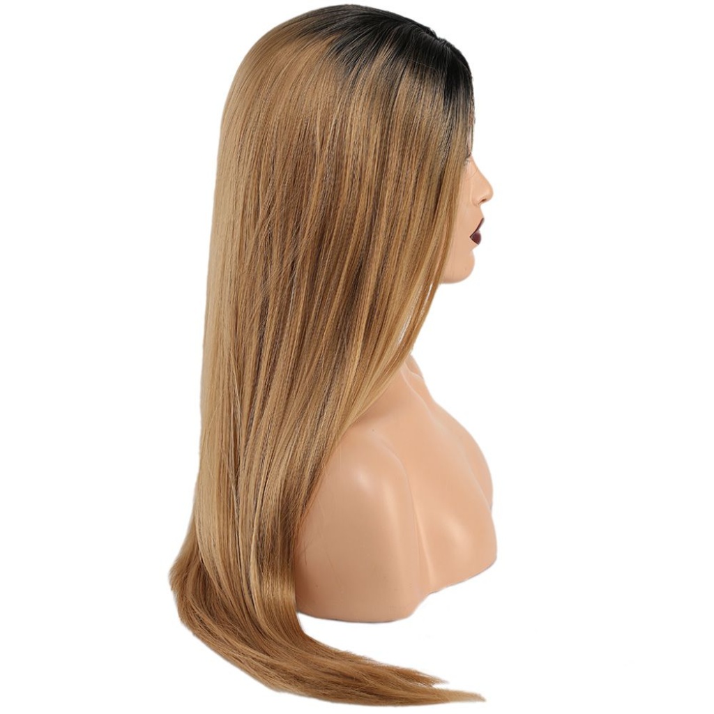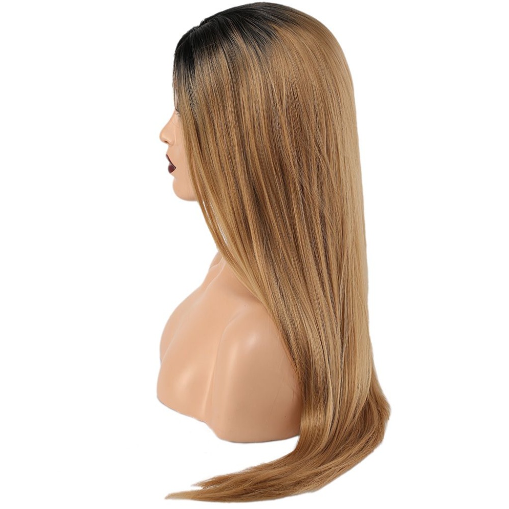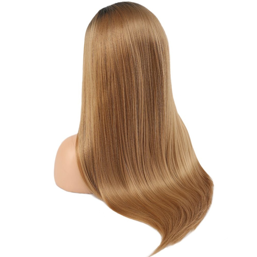 Fiber Sentetik Düz Uzun Tül Peruk - Siyah Karamel Uzun Ombreli
