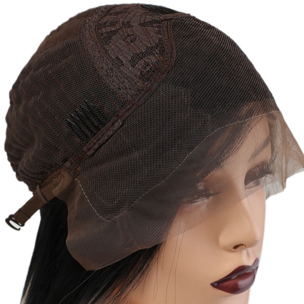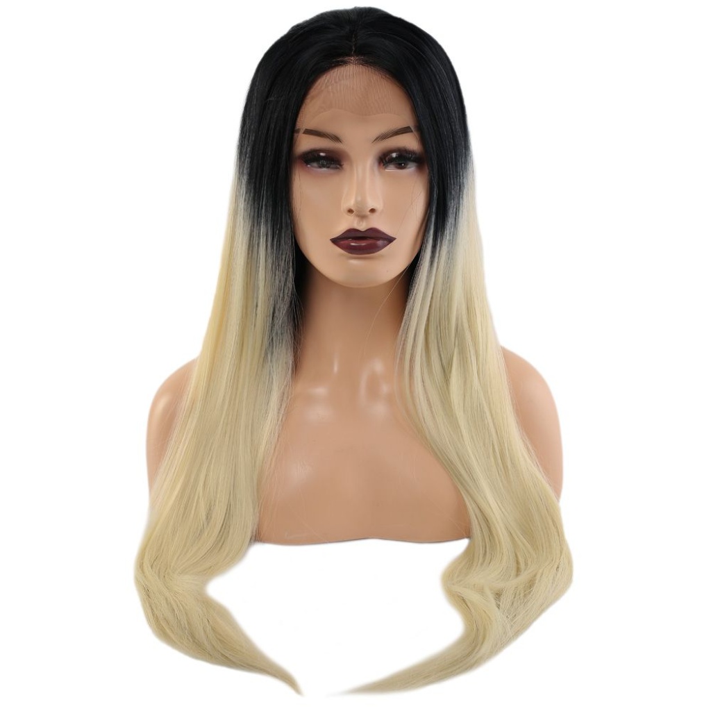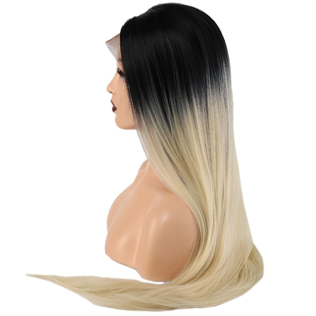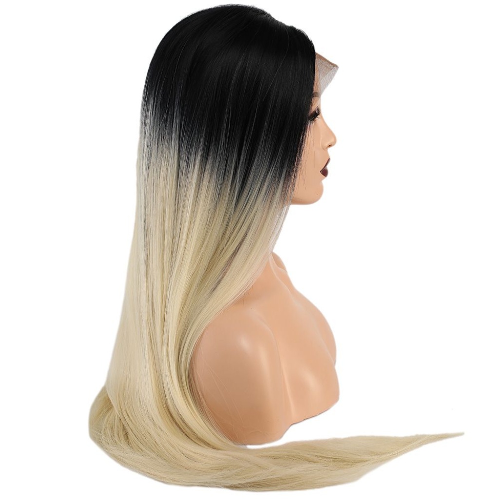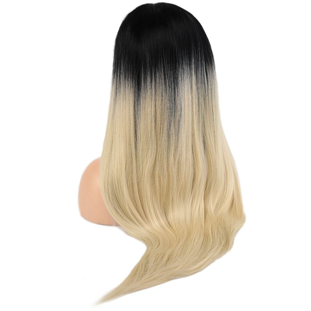 Fiber Sentetik Düz Uzun Tül Peruk - Siyah Platin Orta Ombreli