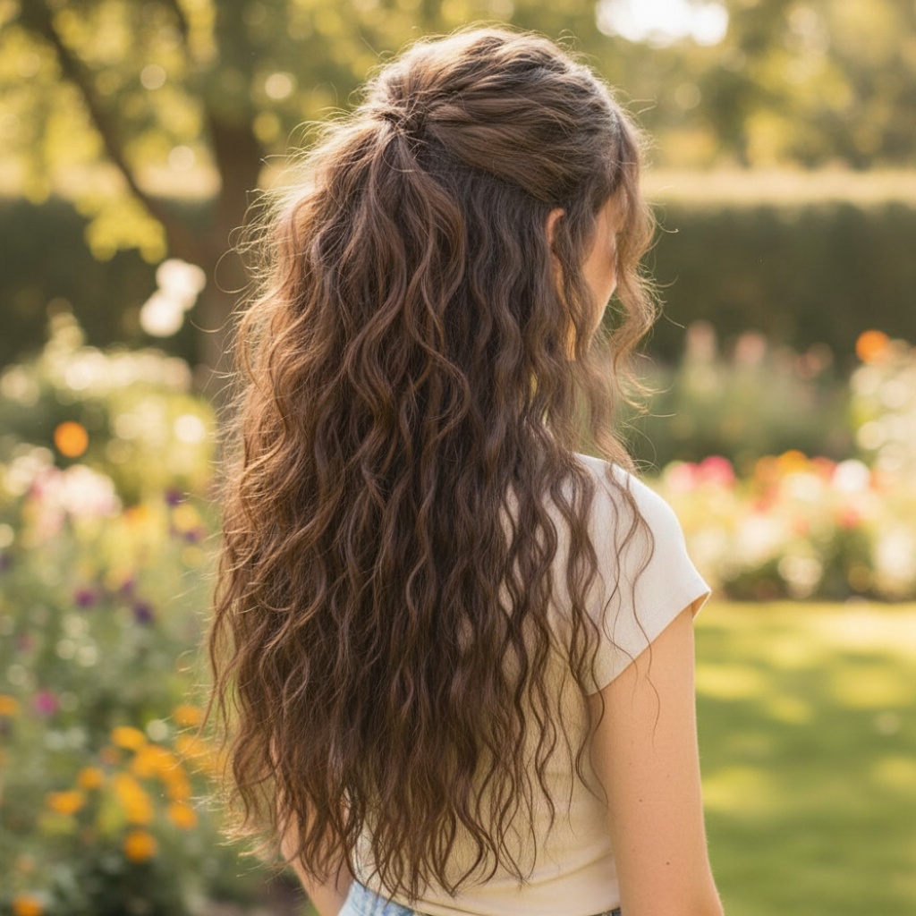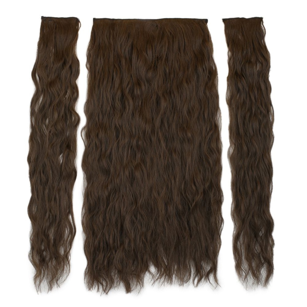 Fiber Sentetik Kabarık Dalgalı Yarım Ay + 2 Yan Çıt Çıt - Açık Kahve