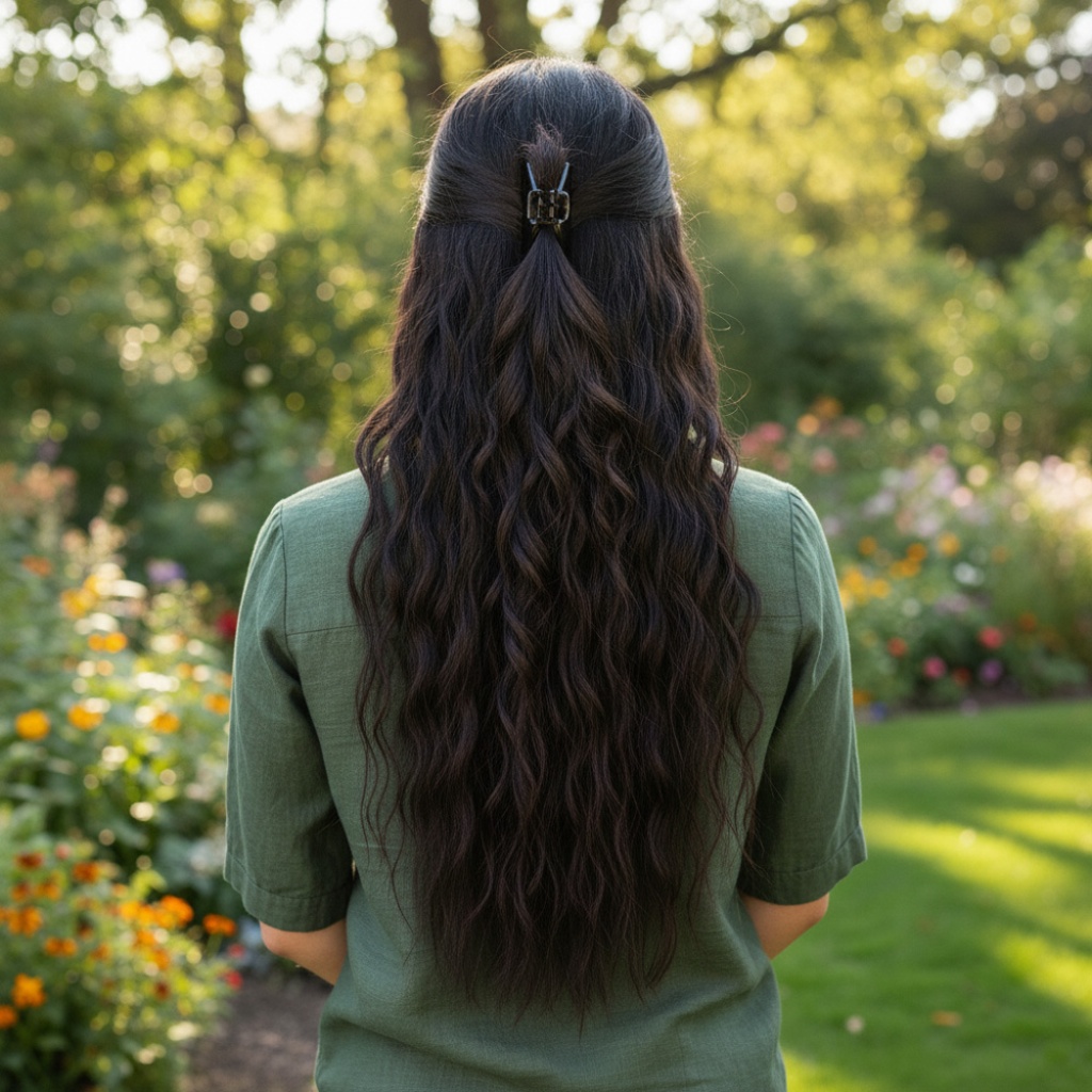 Fiber Sentetik Kabarık Dalgalı Yarım Ay + 2 Yan Çıt Çıt - Kahverengi