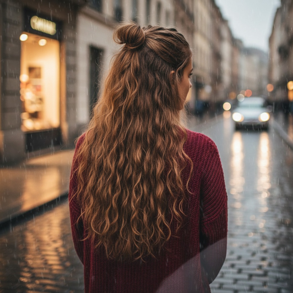 Fiber Sentetik Kabarık Dalgalı Yarım Ay + 2 Yan Çıt Çıt - Kumral