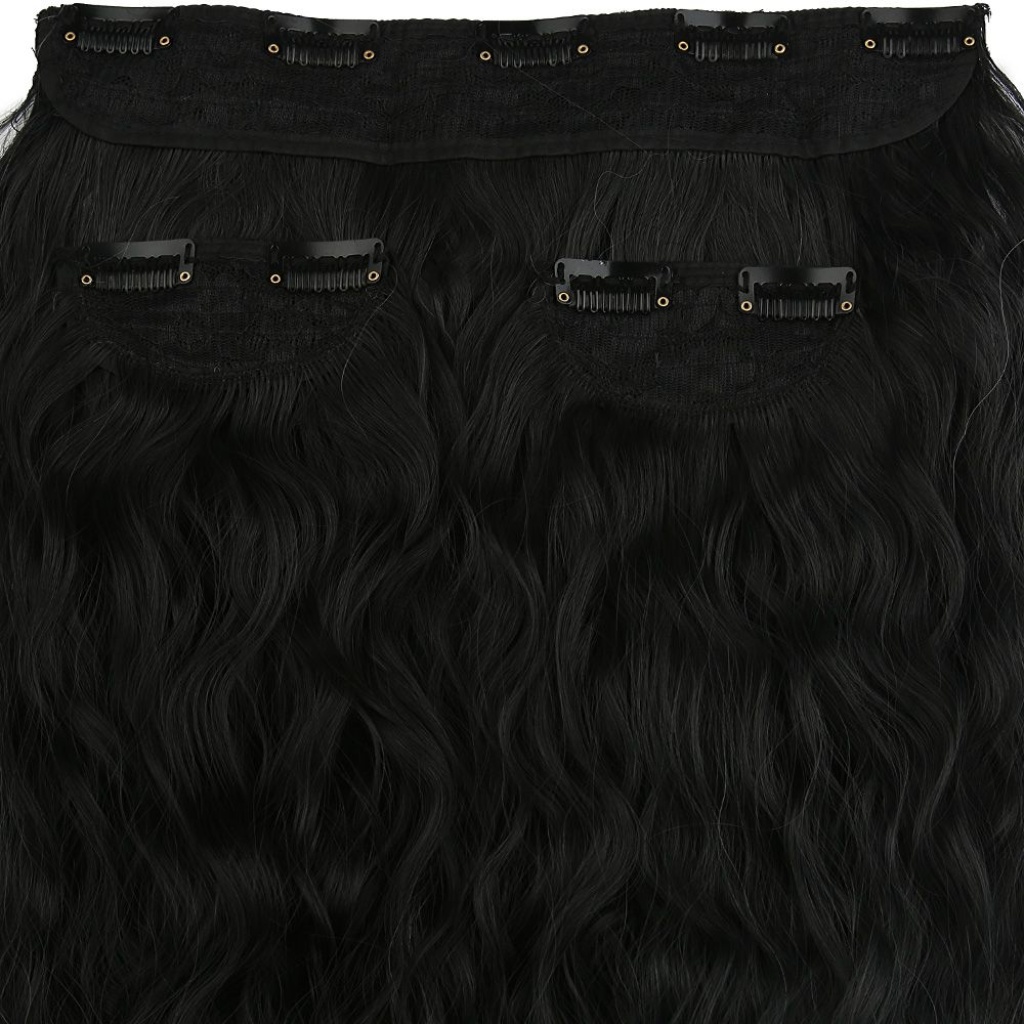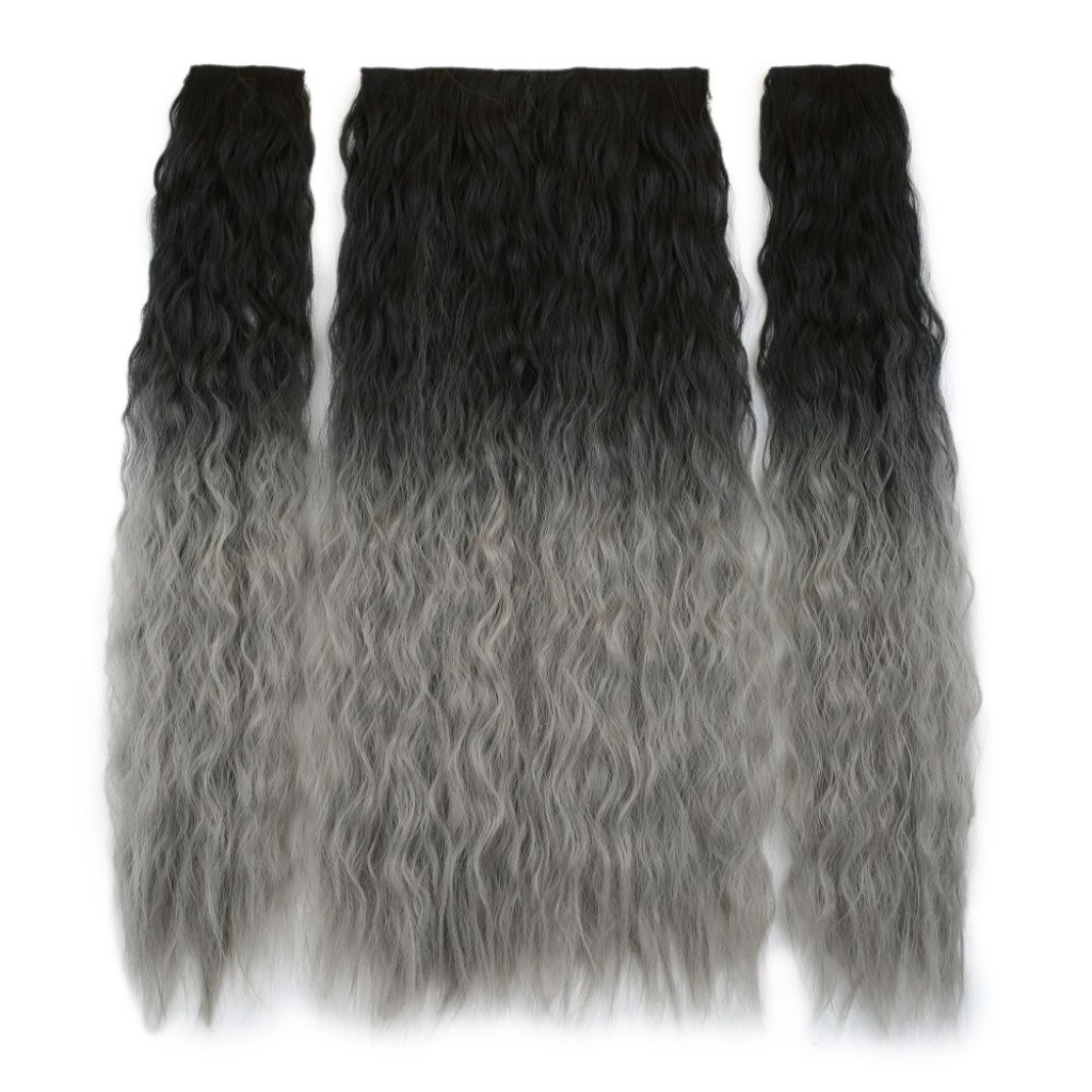 Fiber Sentetik Kabarık Dalgalı Yarım Ay + 2 Yan Çıt Çıt - Siyah Gri Ombreli
