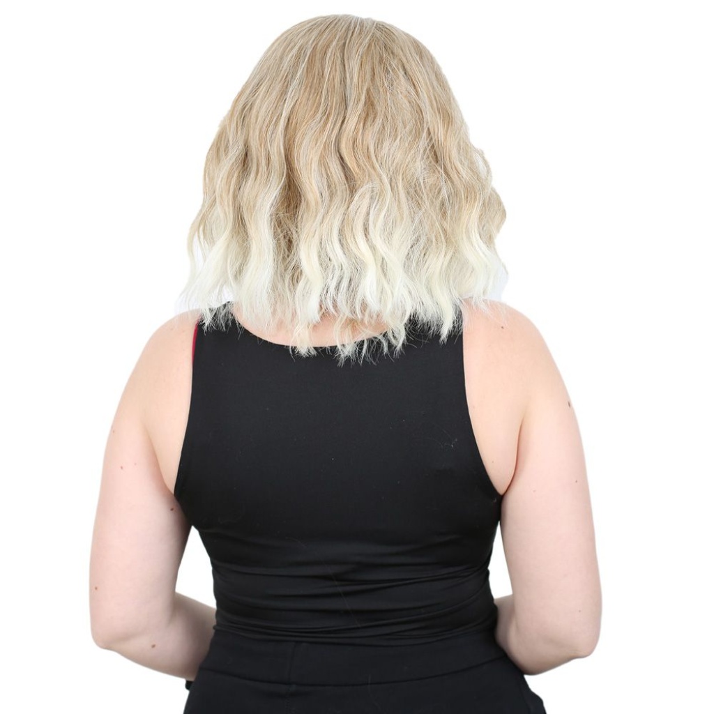 Fiber Sentetik Kısa Dalgalı Perçemsiz Peruk - Karamel / Platin Röfleli