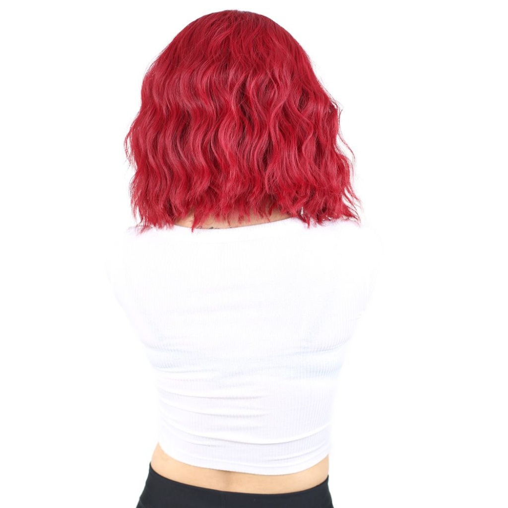 Fiber Sentetik Kısa Dalgalı Perçemsiz Peruk - Kızıl