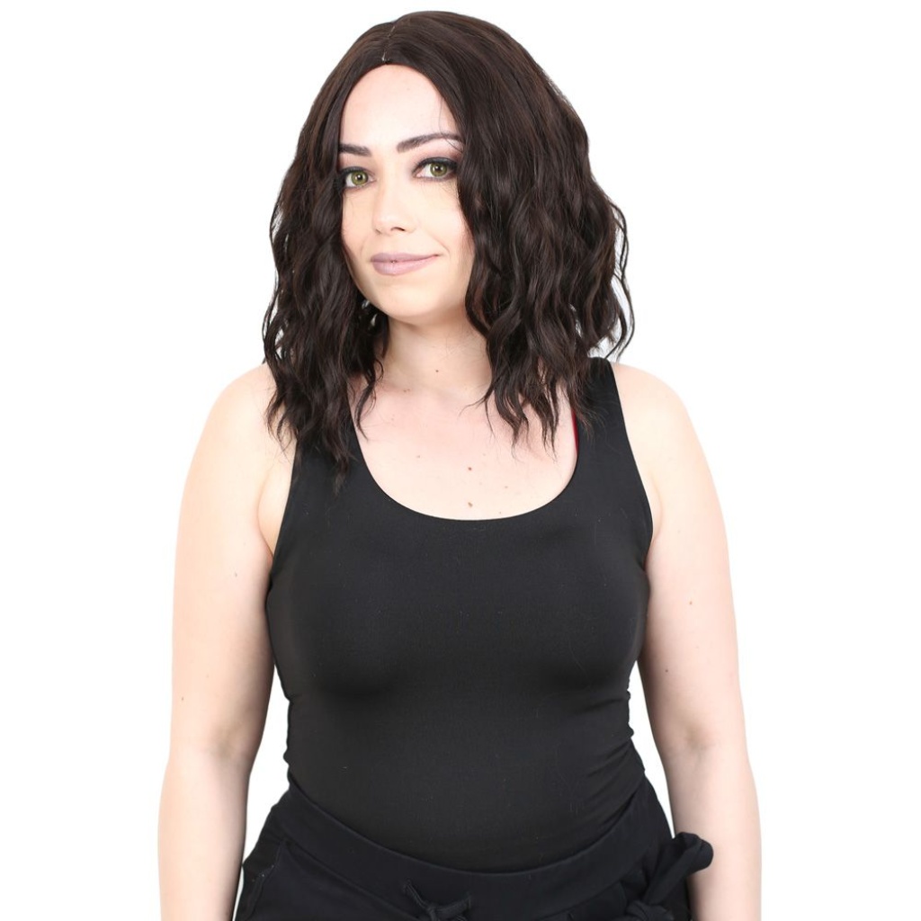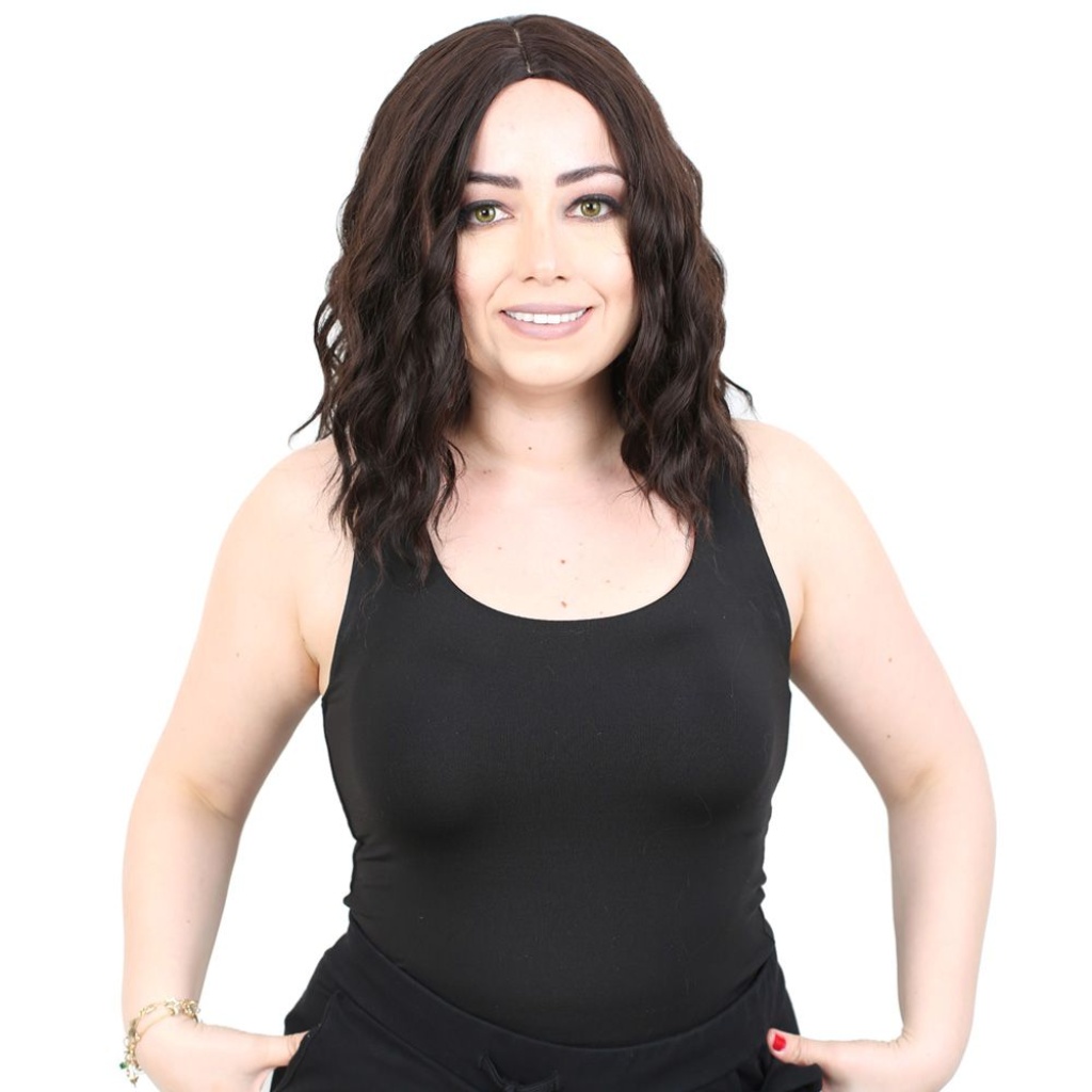 Fiber Sentetik Kısa Dalgalı Perçemsiz Peruk - Koyu Kahve