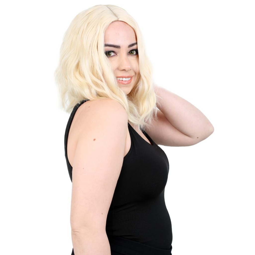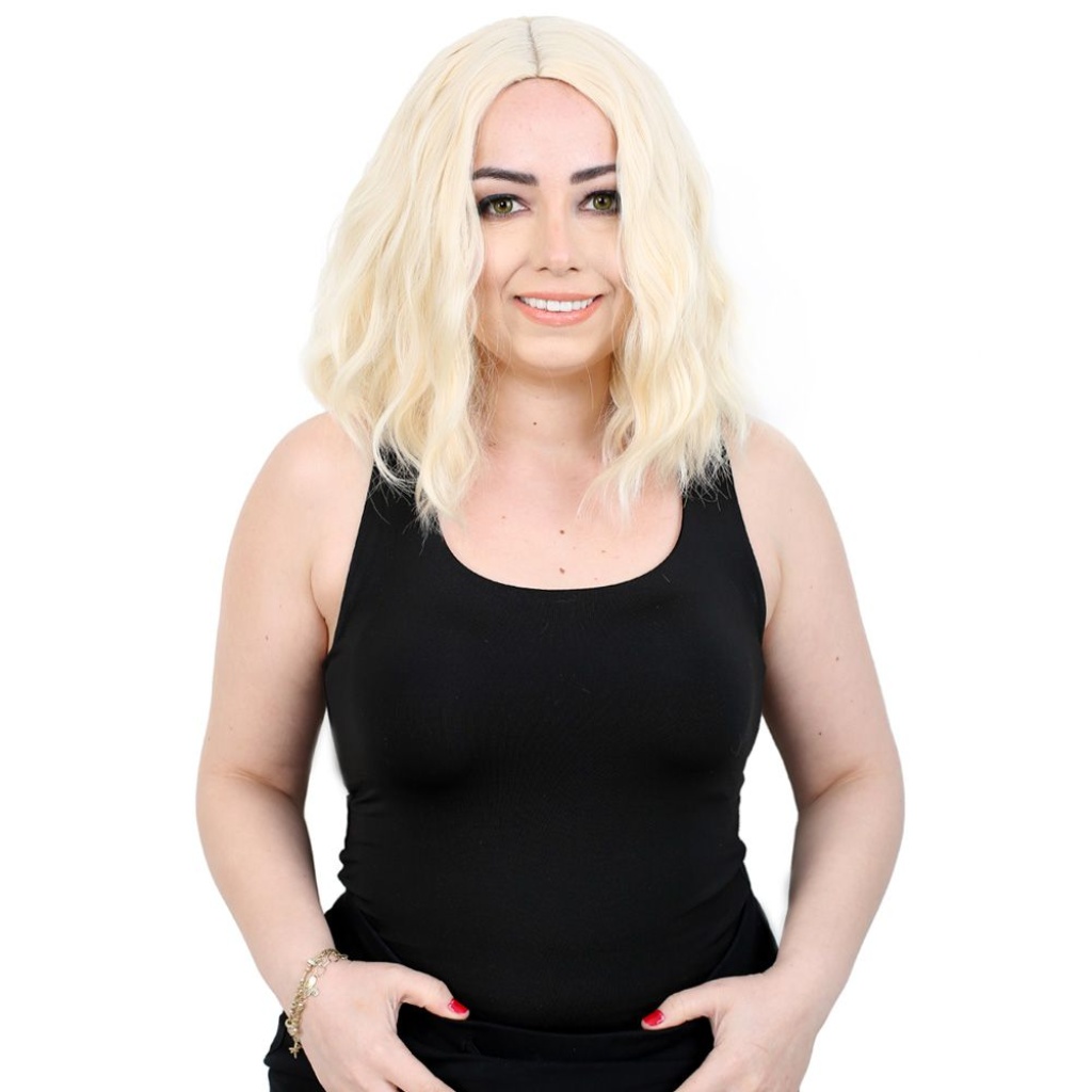 Fiber Sentetik Kısa Dalgalı Perçemsiz Peruk - Platin