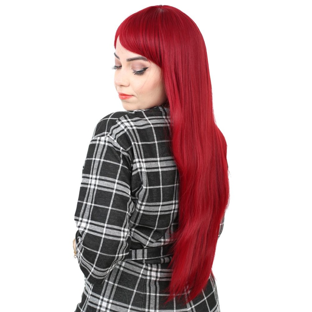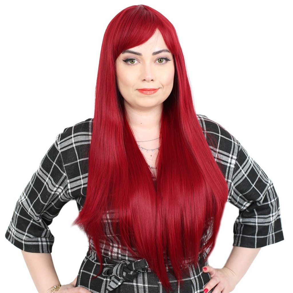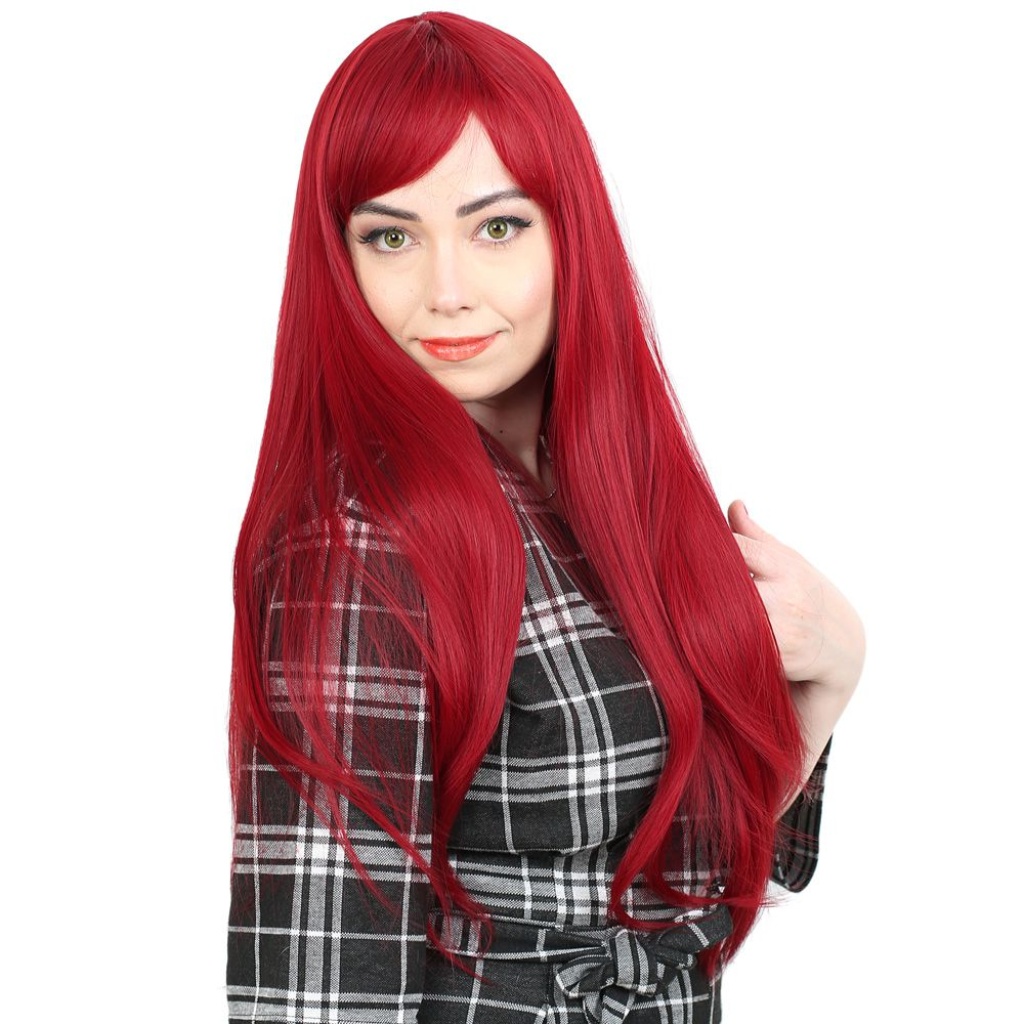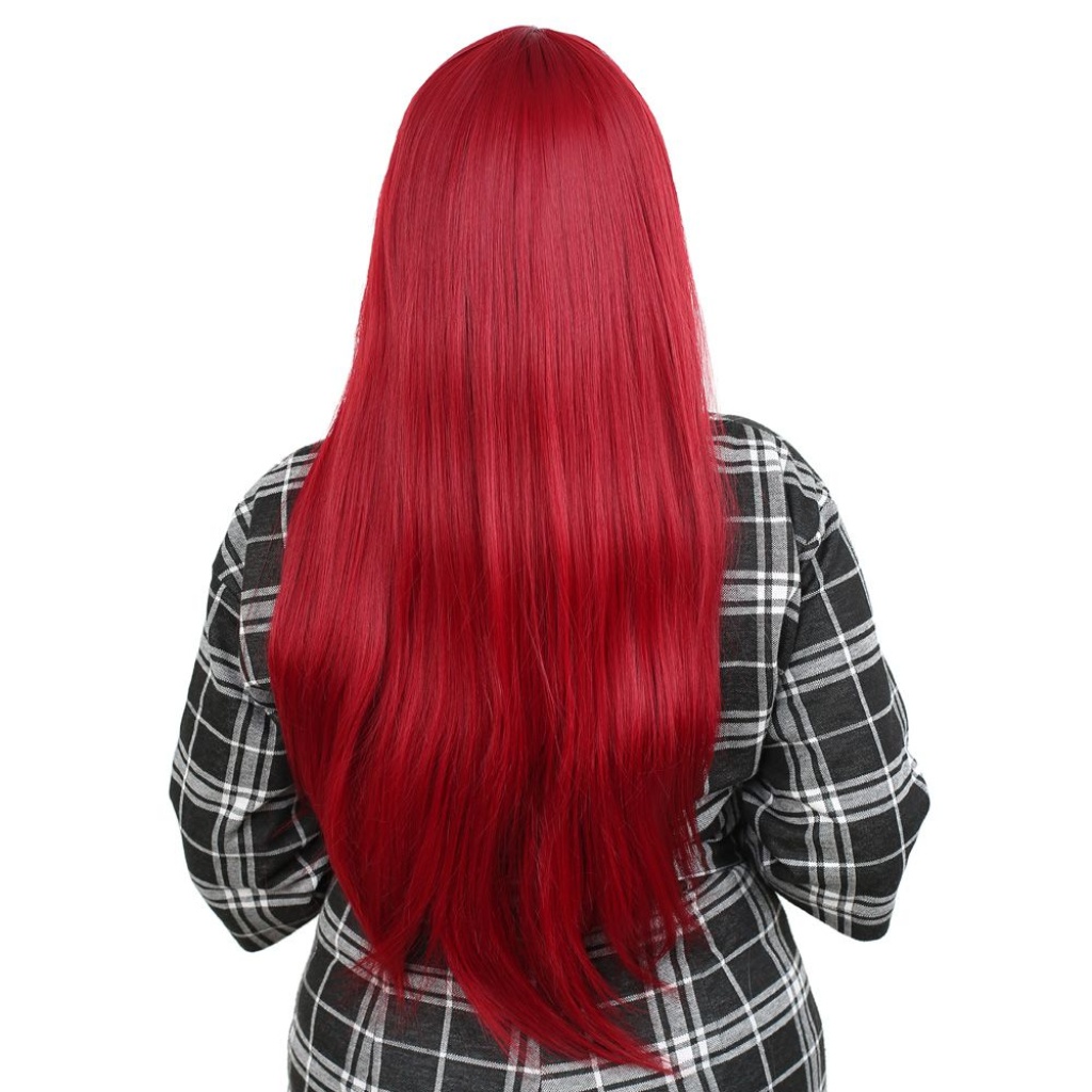 Fiber Sentetik Uzun Düz Kahküllü Peruk - Kızıl